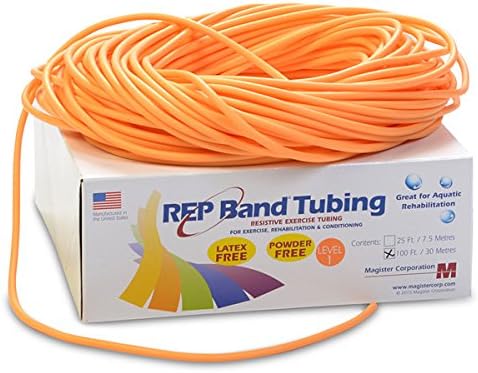 REP Band Latex Free Tubing Like REP Band Resistive Exercise Bands, REP Band Resistive Exercise Tubing is latex-free, odor-free, and powder free. The same benefits for resistive exercise are attainable with the same five levels of resistance for customizing a resistance exercise program. Five levels of progressive resistance. No latex. No powder. No odor. Resistance level options. Sold each. Quantity: 1 Size: 25ft (7.5m) or 100ft (30m) Color: Peach - Level 1 Orange - Level 2 Green - Level 3 Blue - Level 4 Plum - Level 5 Material: No latex. No powder. No odor. Made In: USA Brand: REP Band Manufacturer: Fabrication Enterprises