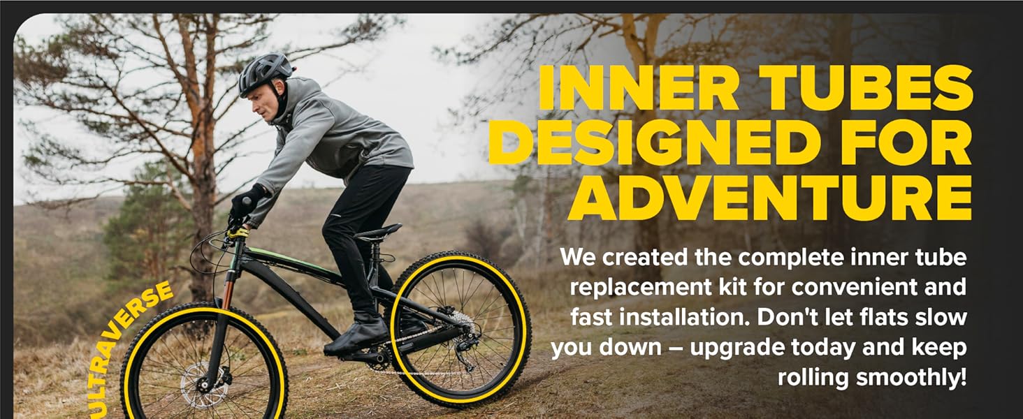 Ultraverse 26" Bike Inner Tubes 26 x 2.125-2.40 – Butyl Rubber Bicycle Tubes with Schrader Valve – Compatible with Mountain, Cruiser, City & Kids Bikes – Set of 2