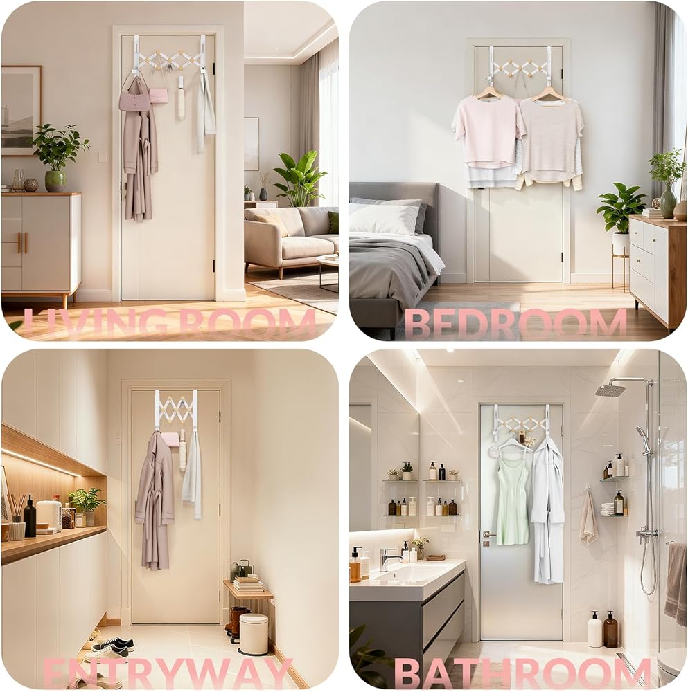 Foldable & Expandable Design: This collapsible over the door towel rack allowing it to be easily folded and removed when not in use. Making it the perfect choice for bedrooms, closet storage, college dorm room, kitchen, bathrooms, and laundry room, Save space, eliminate mess where floor space is a premium