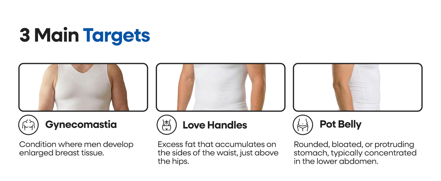 What do men actually search for when they find this product? Things like: "how to hide man boobs under a shirt," "best undershirt for belly fat," "compression shirt that doesn't feel tight," or "what to wear to hide chest fat at a wedding." This shirt is the answer to all of those questions. Engineered with gynecomastia in mind, the reinforced chest zone flattens and smooths the pectoral area discreetly. The double-layer abdominal compression reduces visible stomach bulge by 1–2 inches in appearance. The back panel supports your posture so you look taller and more composed — not just thinner. Ideal for: men with gynecomastia, men self-conscious about belly or love handles, big and tall men needing reliable support, and any man who wants to look his sharpest without anyone knowing why. Wear it to work. Wear it to a wedding. Wear it on a date. Wear it every day. It works because it disappears.