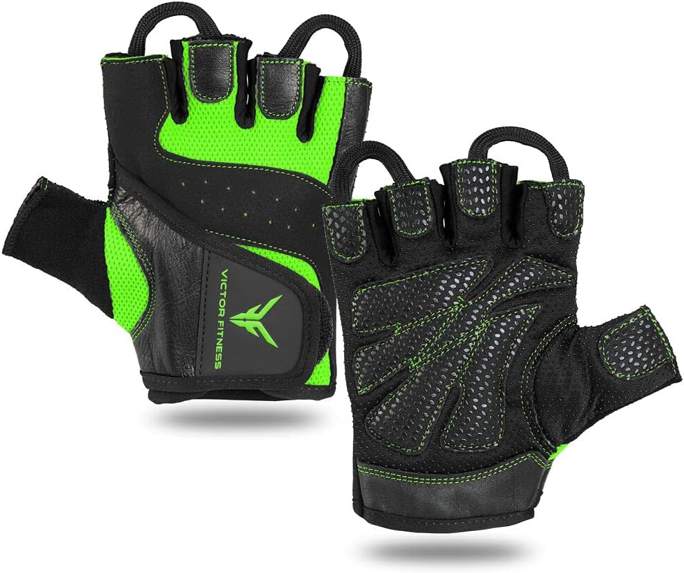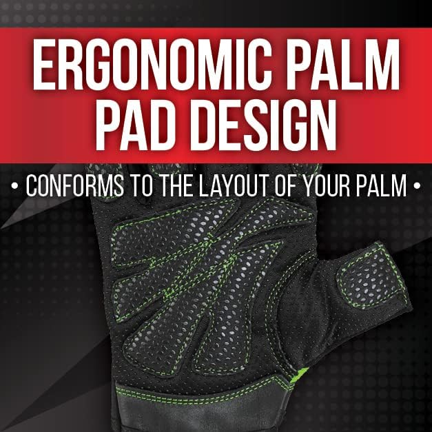 Fingerless Leather Men's Weightlifting Gloves with Full Palm Protection - Perfect for Weight Training, Bench Press, Deadlifting, Pull-Ups (Large, Black/Green)