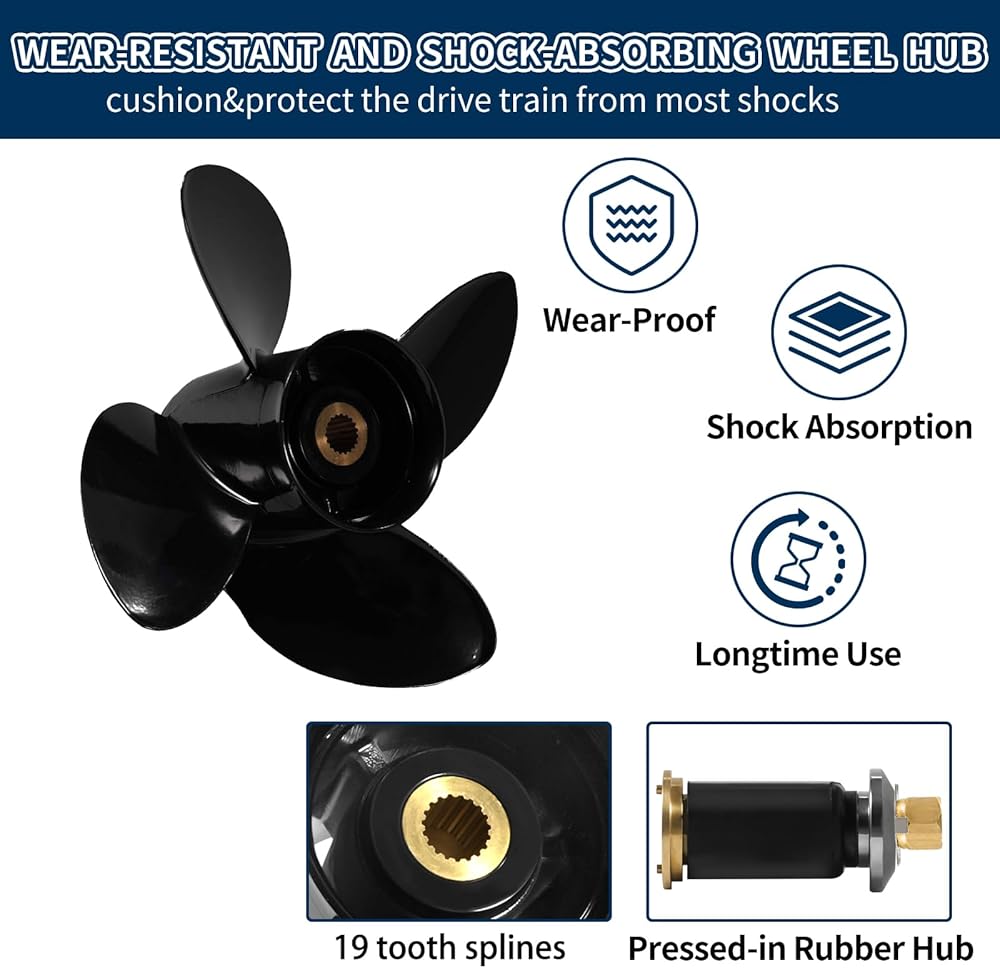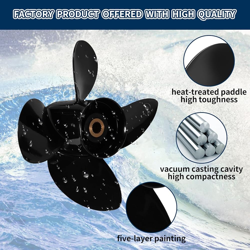 【Compatibility】Choose a Marine propeller that is compatible with your boat's engine. The propeller should match the engine's horsepower, gear ratio, and the number of splines on the propeller shaft.