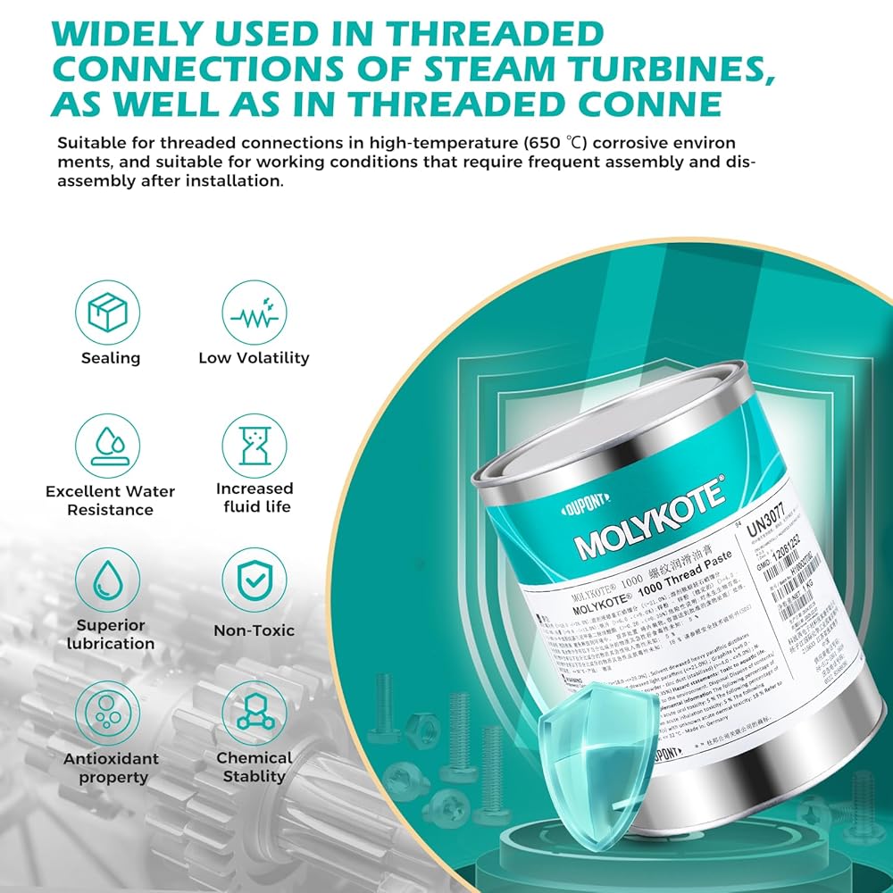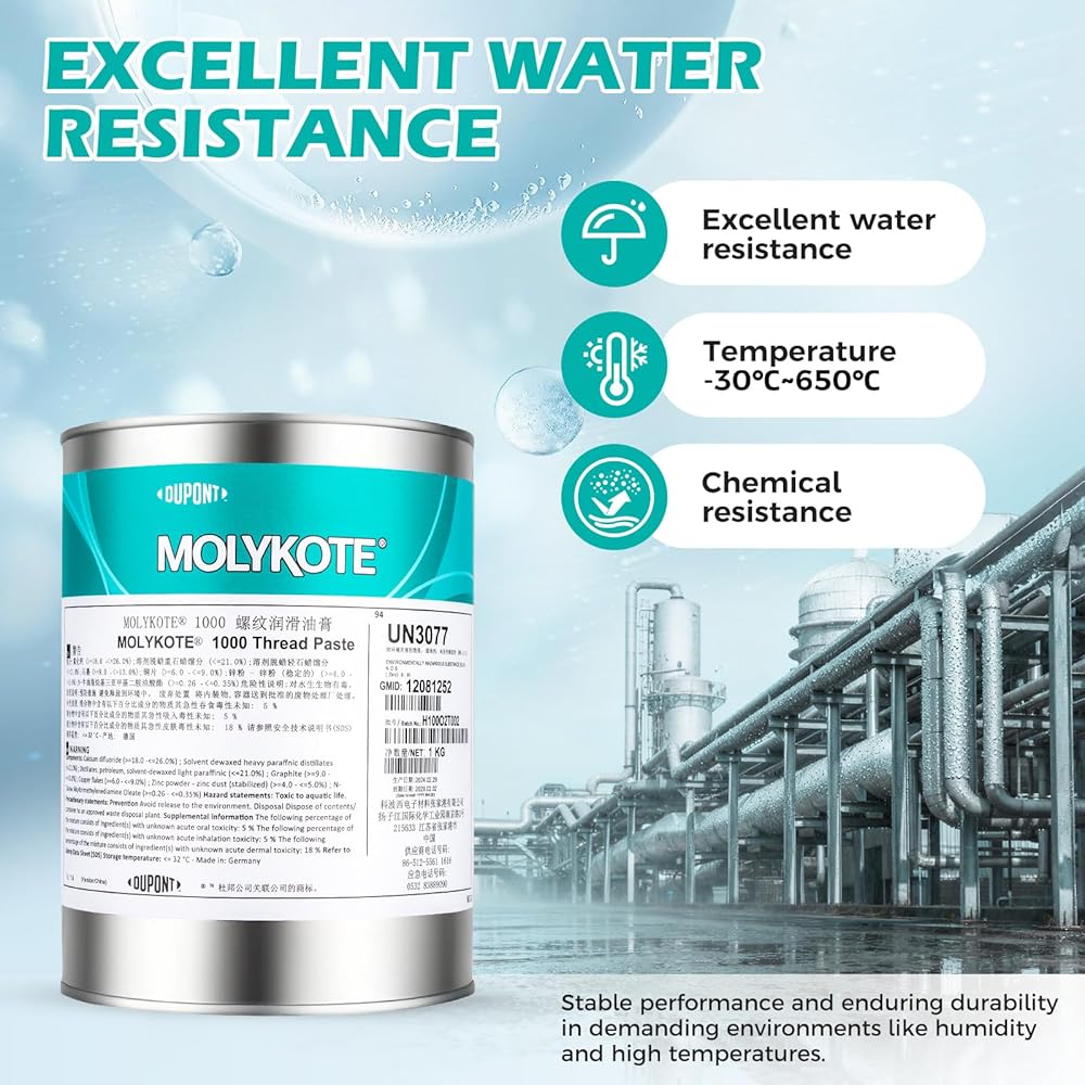 MOLYKOTE 1000 Paste: 1KG one Can, high-performance solid lubricant grease specifically designed for metal bolted joints in high-temperature and corrosive environments.