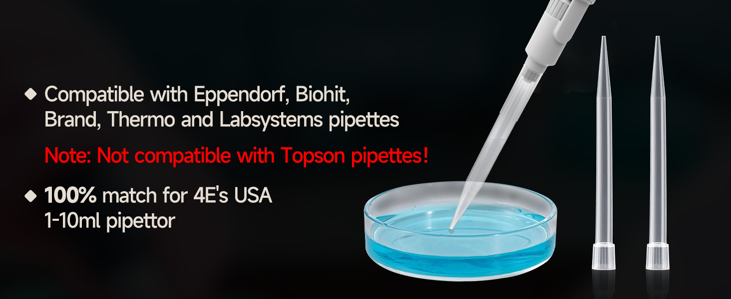 Universal Fit Compatibility: Compatible with Eppendorf, Gilson, Thermo, Brand, Biohit, Labsystems, and most standard pipettes