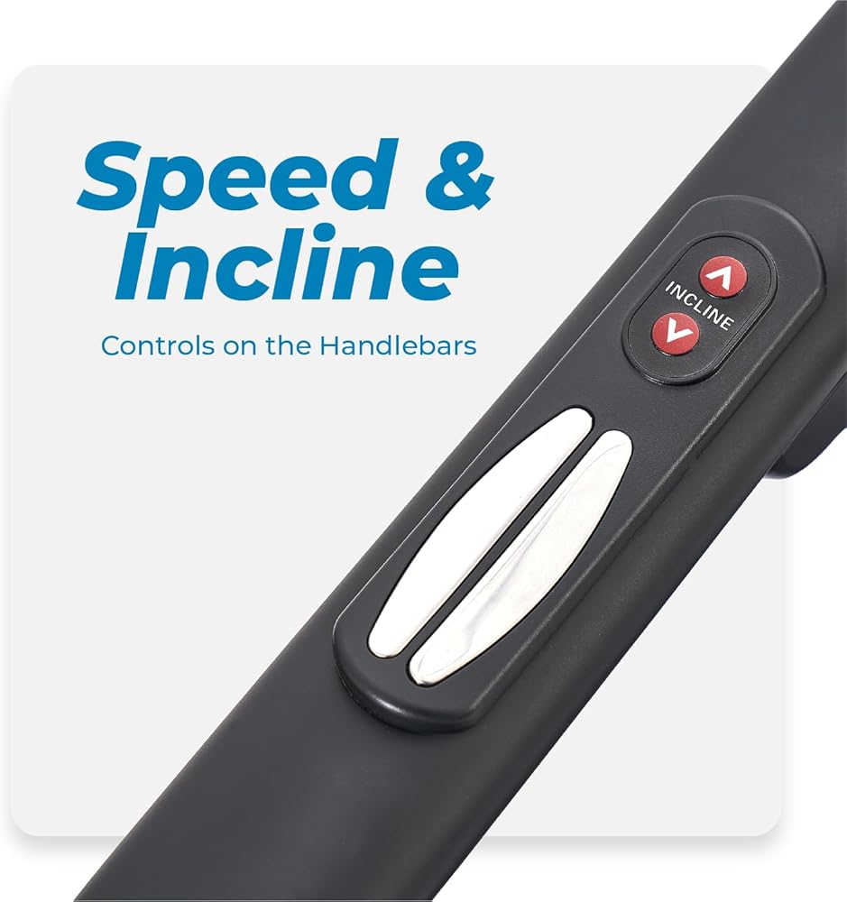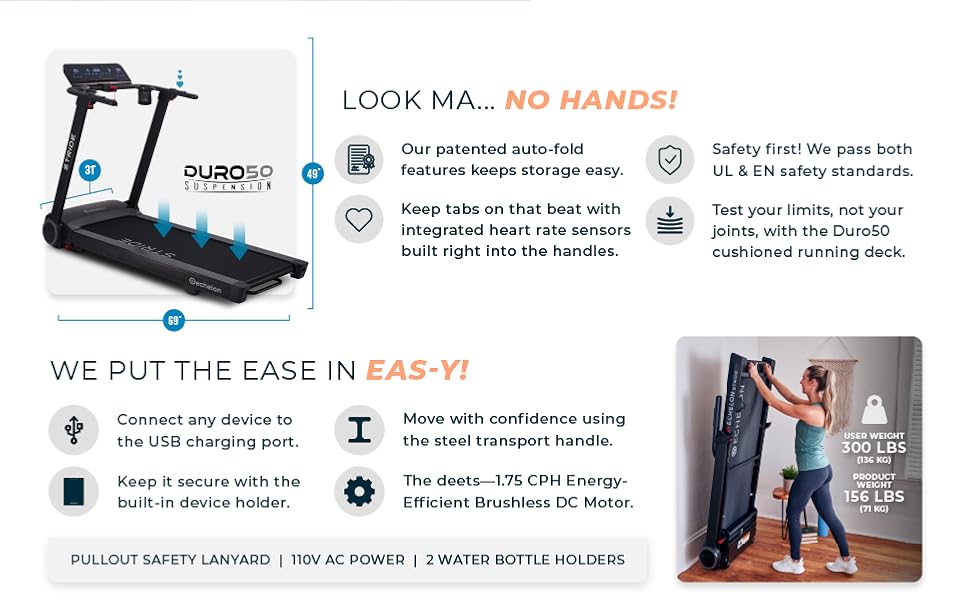 This foldable treadmill with an incline is designed with simplicity, combining functionality and technology to enhance your workout experience. It comes with a smart auto-fold feature, making your heart-pounding workouts more accessible than ever. The treadmill's 300 lb capacity offers a 20"" x 55"" running deck, integrated handlebar sensors to monitor your heart rate, and a maximum speed of 12 miles per hour with a 10% incline capability. It also boasts convenient side steps for easy dismount, Bluetooth connectivity, a USB charging port, and a built-in handle for portability, as well as a safety stop lanyard. When not in use, it folds down to a mere 10 inches and features built-in transport wheels for straightforward storage.