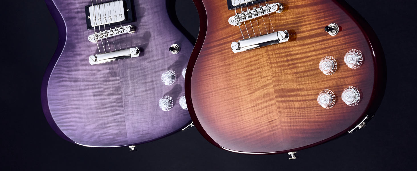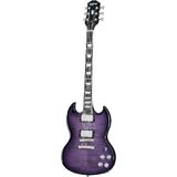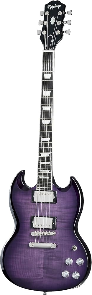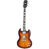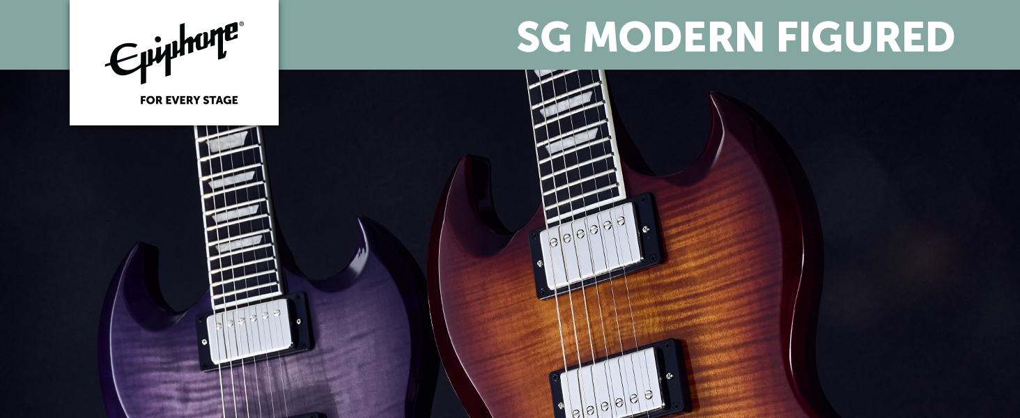 The SG Modern Figured from Epiphone's Inspired by Gibson Collection has the classic SG body profile made from mahogany and a maple cap with an AAA-figured maple veneer. Powered by a pair of Epiphone's ProBucker humbucker pickups with coil-splitting, phase switching, and a treble bleed circuit for a multitude of tones. It also features an ebony fingerboard, asymmetrical SlimTaper neck profile with contoured heel, world-class Grover Locking Rotomatic 18:1 ratio tuners, and a Graph Tech NuBone nut.
