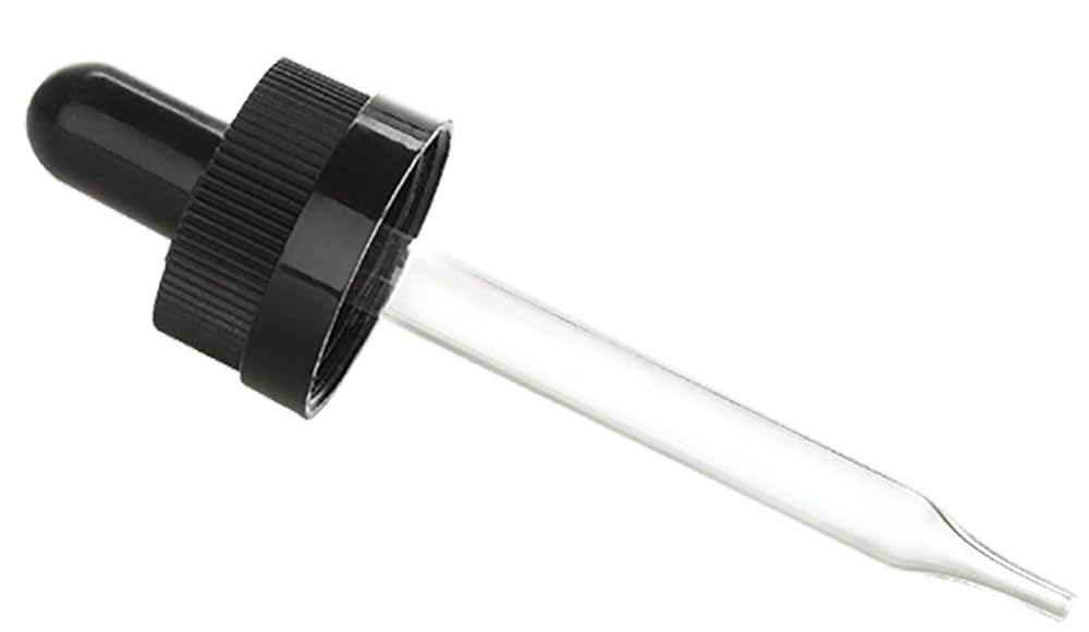 IDEAL DROPPER FOR ESSENTIAL OIL & PHARMACEUTICAL USE. Top Quality 2 3/4" tapered glass pipette droppers fit perfectly on a standard 1 oz. bottle (20/400 finish).