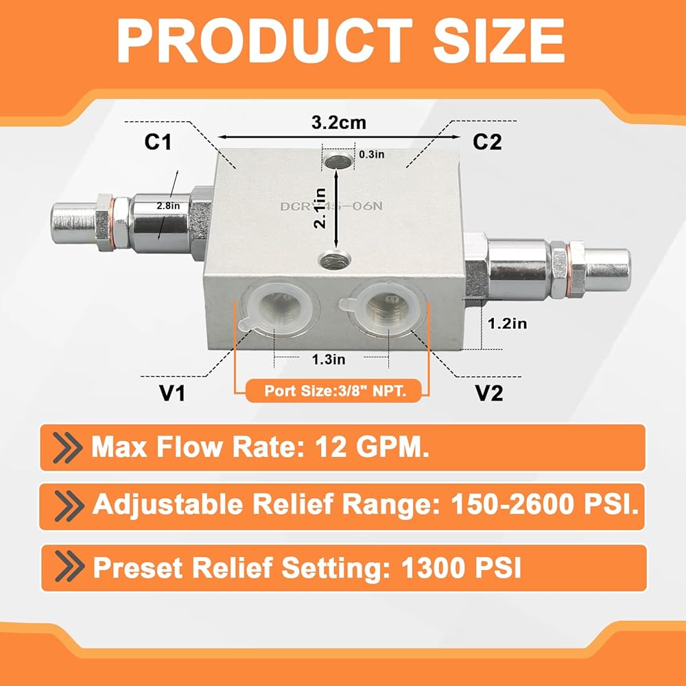【Easy to Use】This hydraulic pressure relief valve should be installed between the control valve and the motor/cylinder. To minimize pressure loss, it is recommended to install the product as close as possible to the motor/cylinder.
