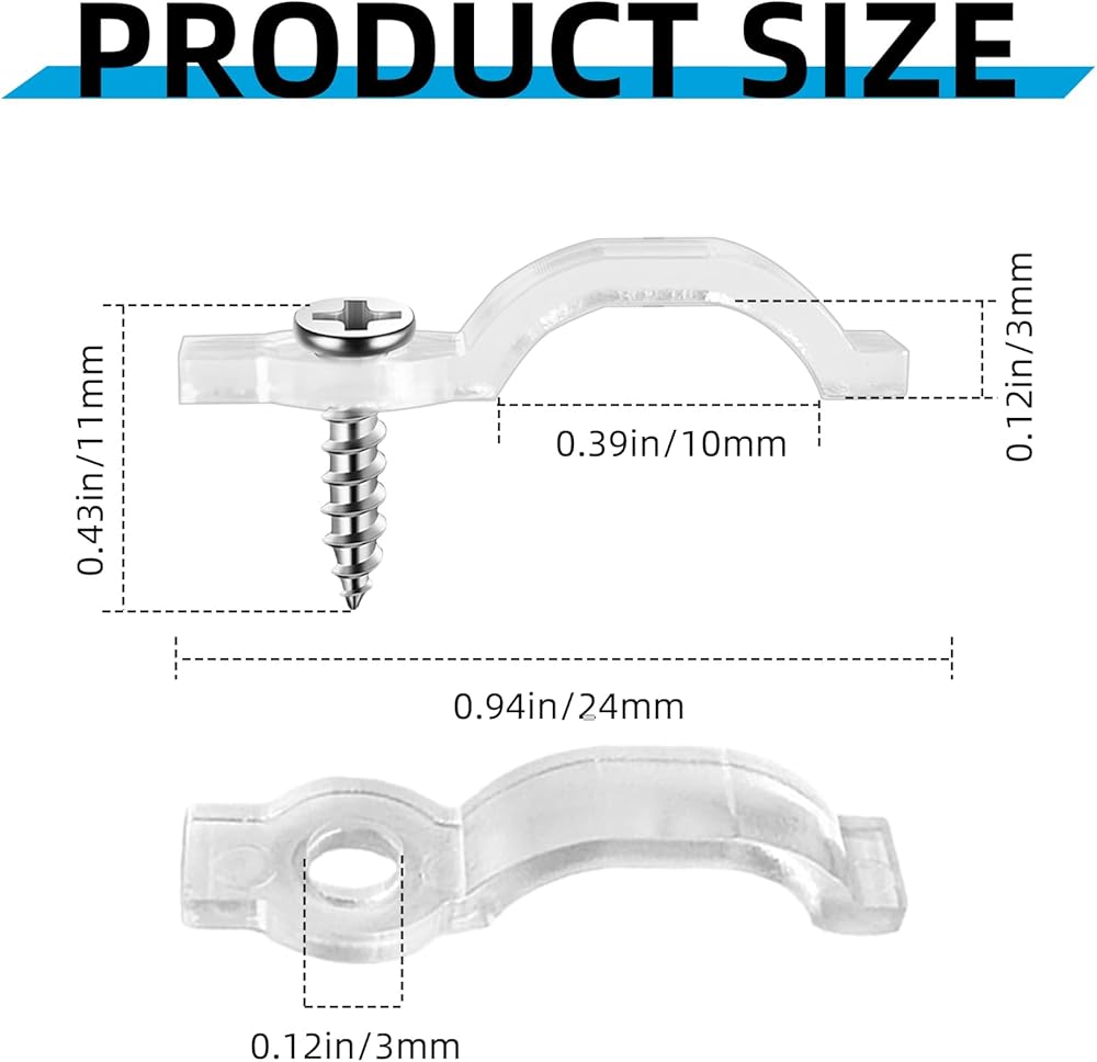 【Universal Compatibility Design】 These light strip mounting clips are specifically designed for 10mm wide waterproof light strips, with each screw approximately 0.43 inches/11mm in length. The mounting brackets are the ideal clips for 3528, 5050, 5630, and 3014 light strips, providing a secure grip on the most common waterproof silicone tube light strips available on the market