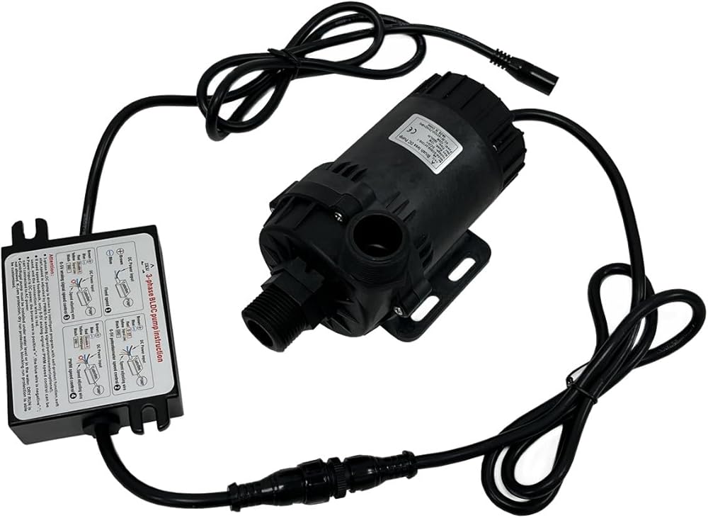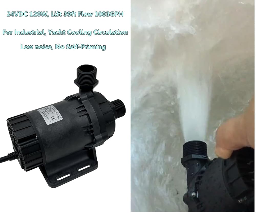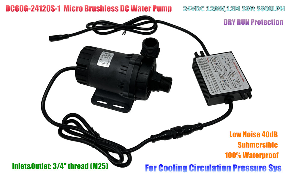 SHYSKY Heavy Duty Low Noise 24V 120W Micro Brushless DC Water Pump DC60G-24120S-1 39ft 1003GPH, DRY RUN Protection, For Cooling Circulation Pressure Sys