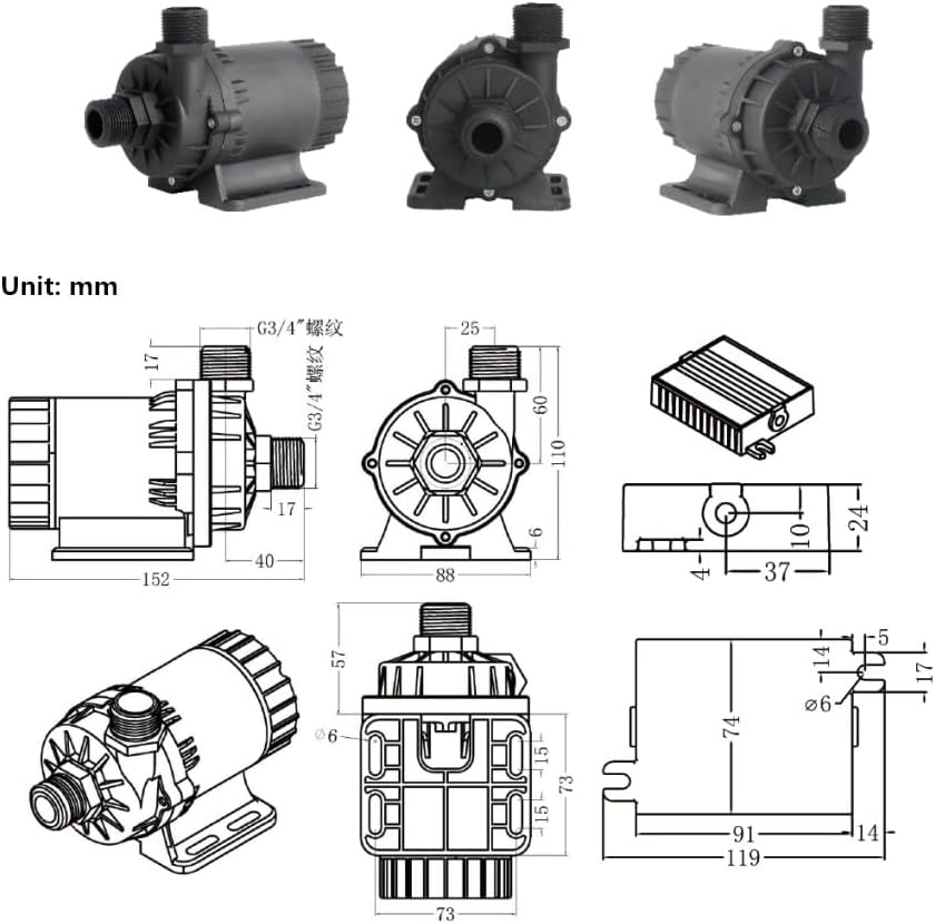 With typical features of low-voltage safety, high power-efficiency, low noise at normal work and supporting long-time continuous reliable running, this pump is widely applied for fountain landscape, industrial equipment water cooling circulation, air compressor cooling circulation, PC server water cooling, yacht/ vehicle water cooling, and vavrious other industrial, household, and landscape water processing systems. Note that pump cannot be self-priming.