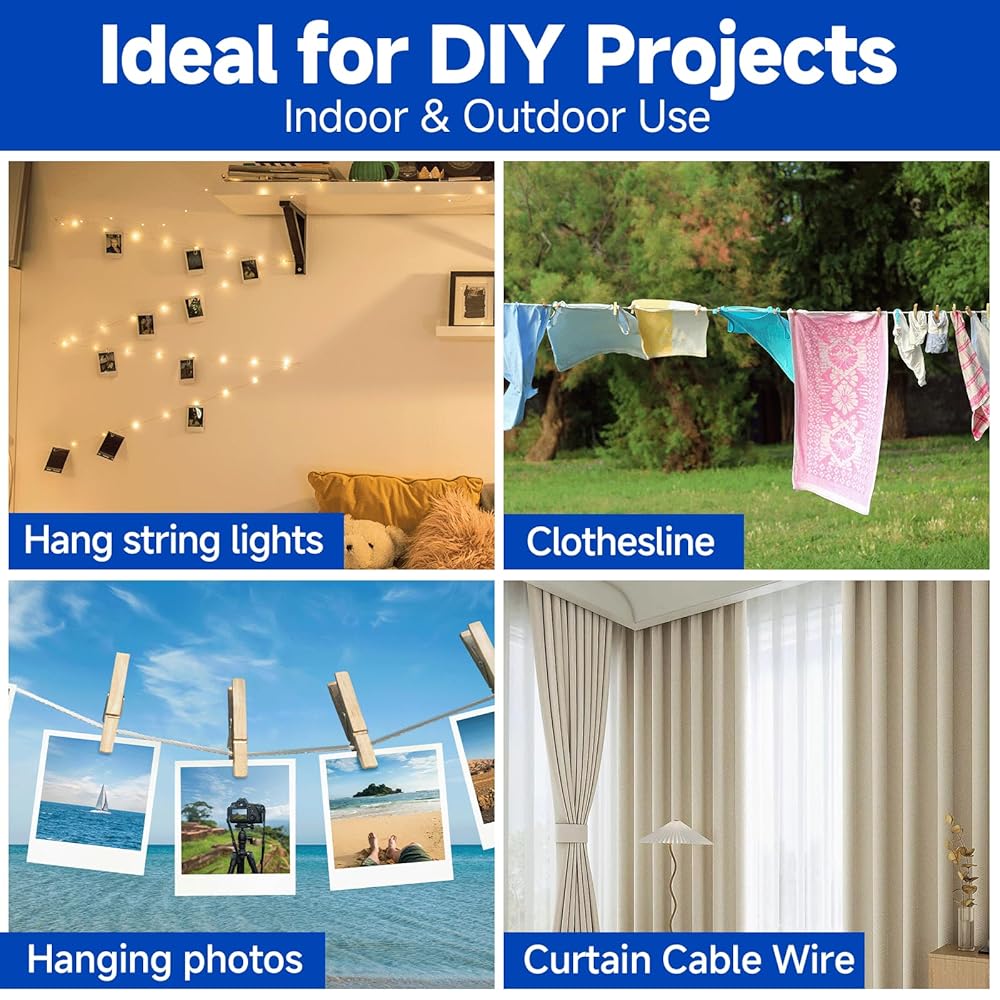 MATERIAL: Metal wire rope features a galvanized surface, light weight, flexible and can be easily bent, not easy to break, anti-rust, high temperature resistance, suitable for various operations and applications