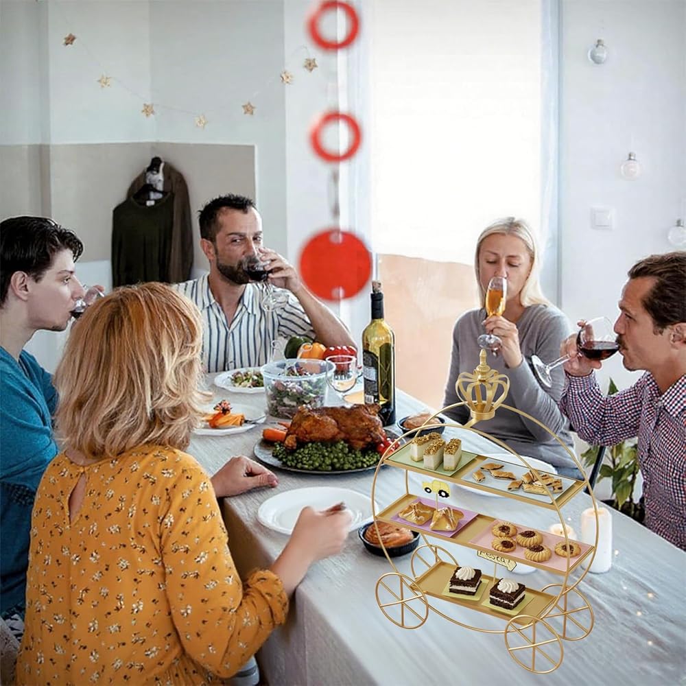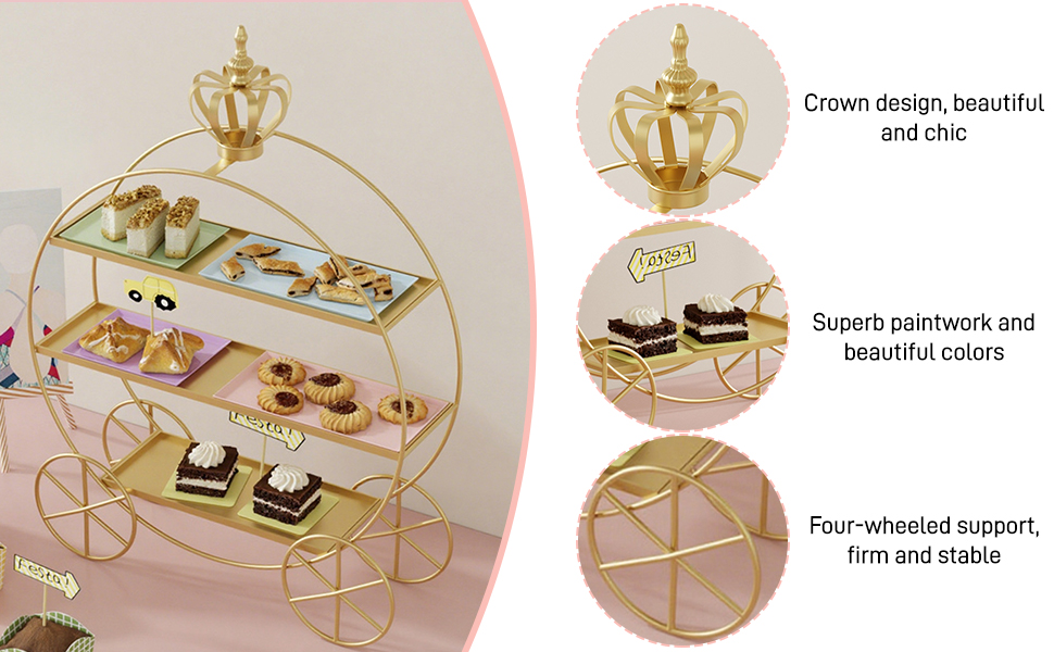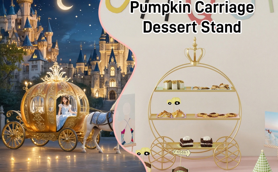 Crown Carriage Cake Stand: This cake stand is in the shape of a pumpkin carriage with an elegant and unique design; the European-style crown stand adds royalty to your desserts and shows off your class
