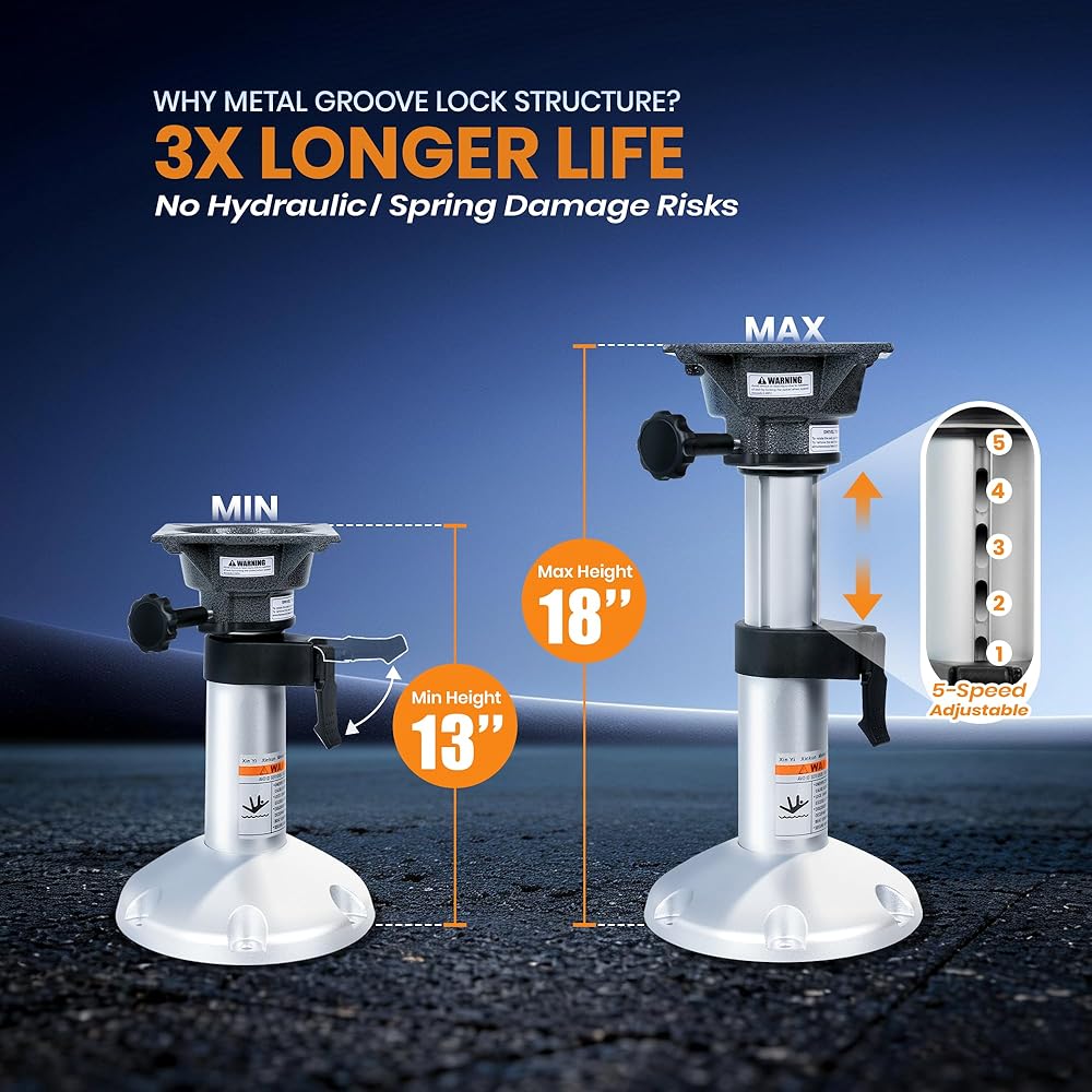 Boat Seat Pedestal Mount Base, 13-18 Inch Adjustable & Locking, Marine Grade Aluminum for Fishing Bass Pontoon Boats