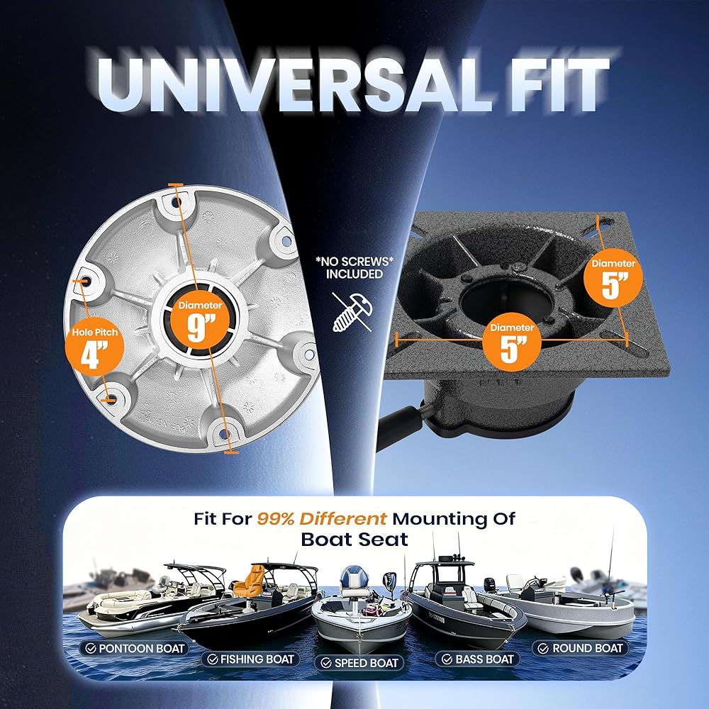- UNIVERSAL BOAT SEAT COMPATIBILITY:Standard 5*5 inch mounting holes fit most boat seats. Ideal for fishing, bass and pontoon boats.