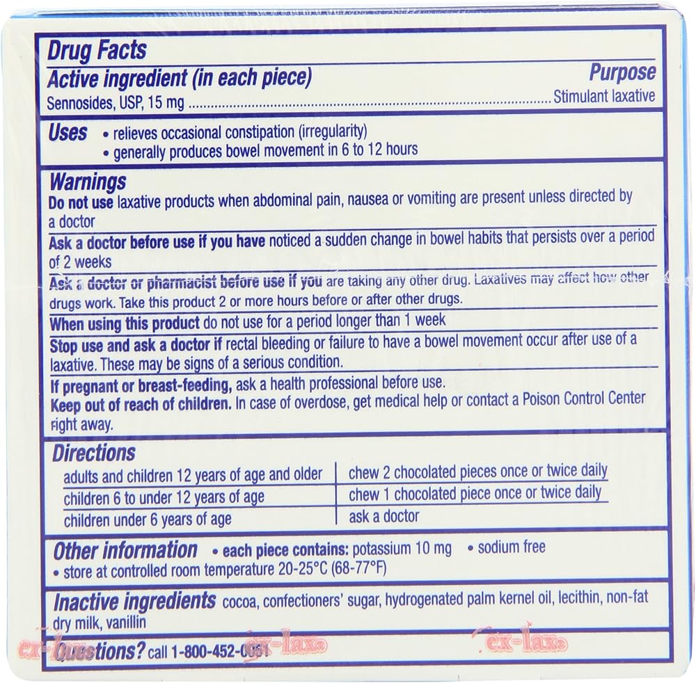 Ex-Lax contains Sennosides, USP, 15 mg for gentle overnight relief you can trust