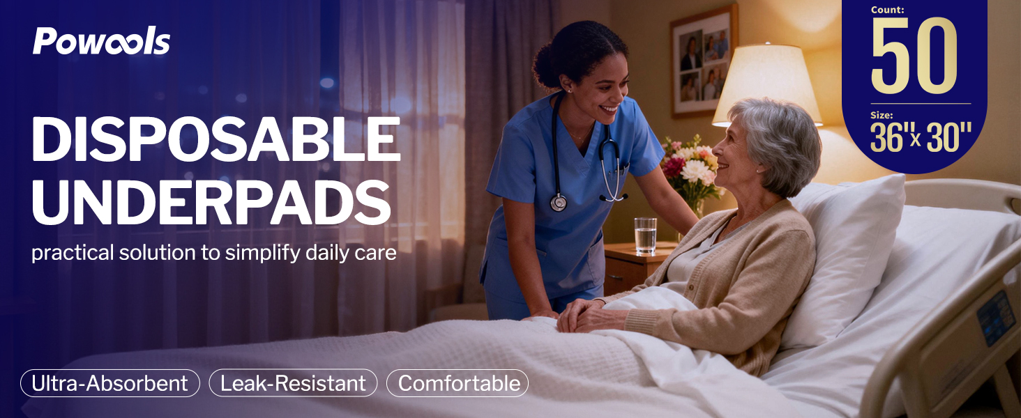 Powools Bed Pads Disposable Adult - 50 Count Incontinence Bed Pads, Super Absorbent Pee Pads for Adults, Skin-Friendly & Disposable Changing Pads for Baby, Leak-Proof Puppy Pads, 36" x 30"