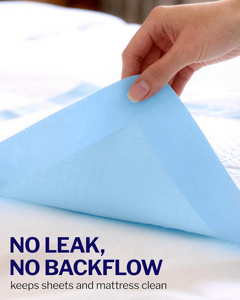 LEAKPROOF PE BACKING: Built with a waterproof PE backing, this bed pad disposable for adults with extra-large size forms a secure barrier that prevents liquid from reaching sheets or furniture. It reduces laundry and cleanup time, allowing caregivers to easily remove and discard the pad after use for more efficient routine care.