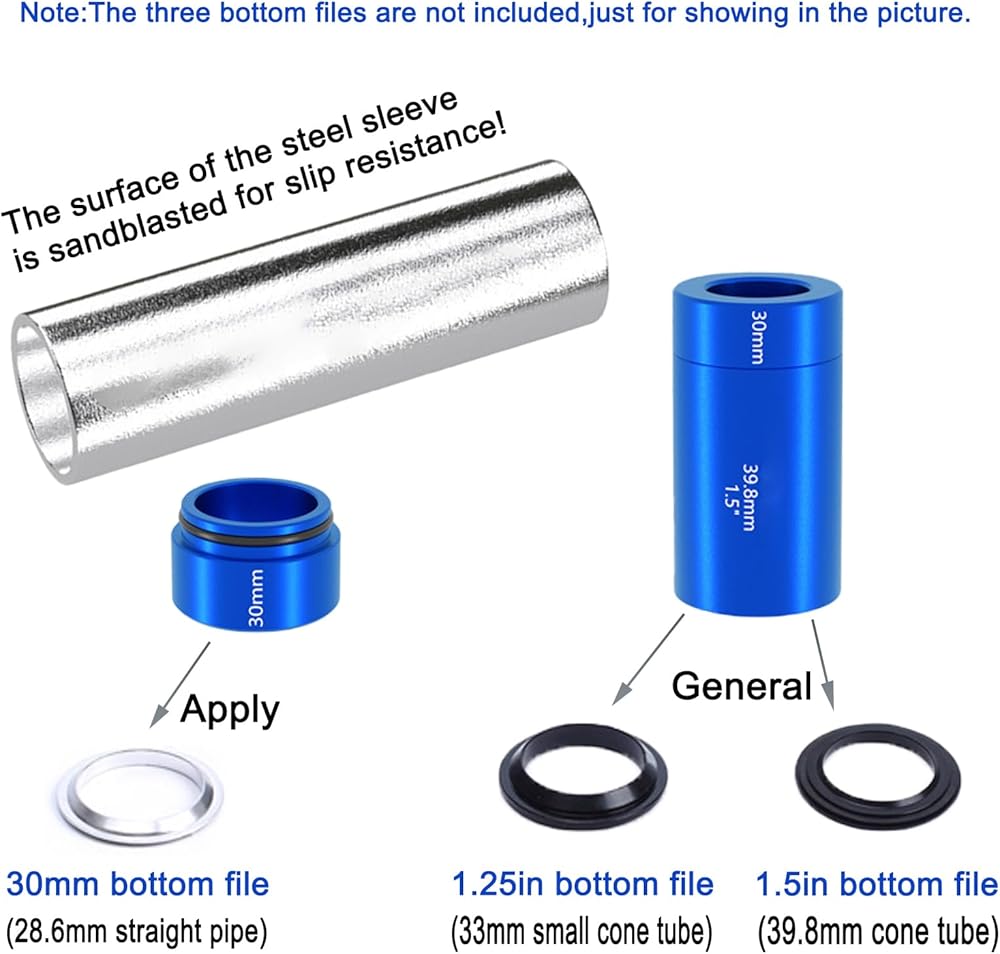 【Application】The bike front fork setter kit is suitable for 28.6mm outside diameter front fork, 1.25-inch non-standard taper tube front fork, 1.5-inch standard taper tube front fork. Non-standard 31.8-33mm straight pipe front fork and 31.8-39.8mm non-standard conical pipe front fork are not available.