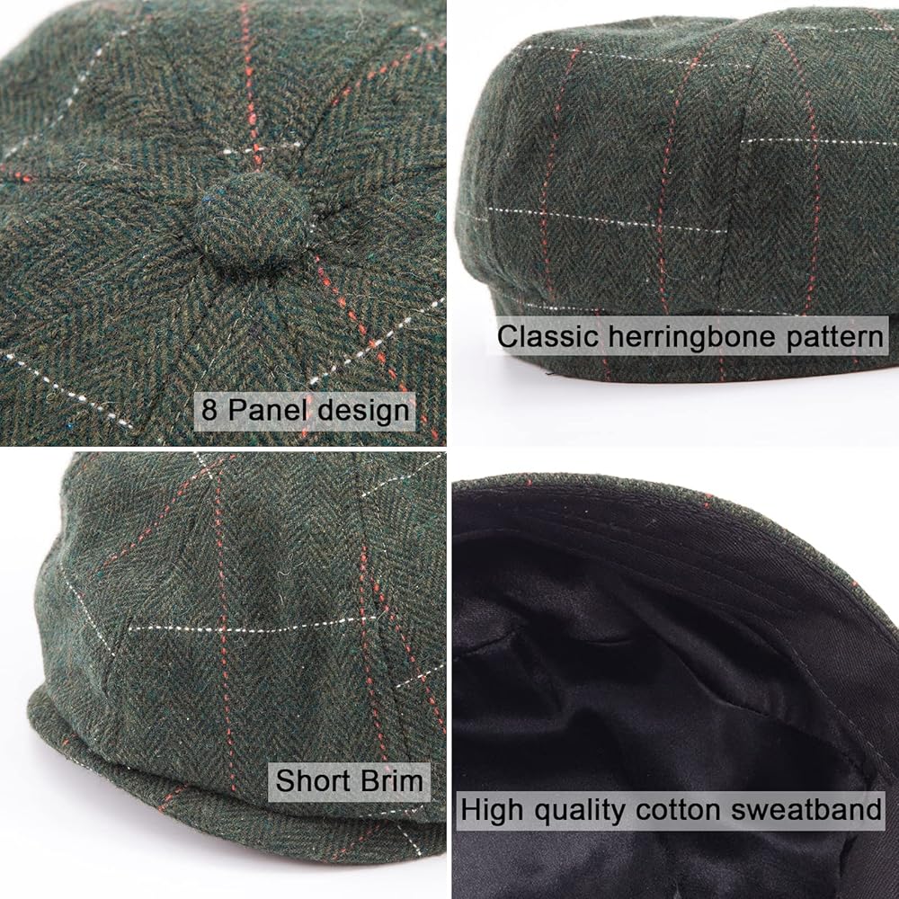 Men's Classic Cap - 8 Panel newsboy hats are the quintessential hats for men. It is a excellent casual-wear hat. Classic herringbone pattern, mixed color design, minimalist and understated. In autumn and winter, wool blend hats are a popular option for men.