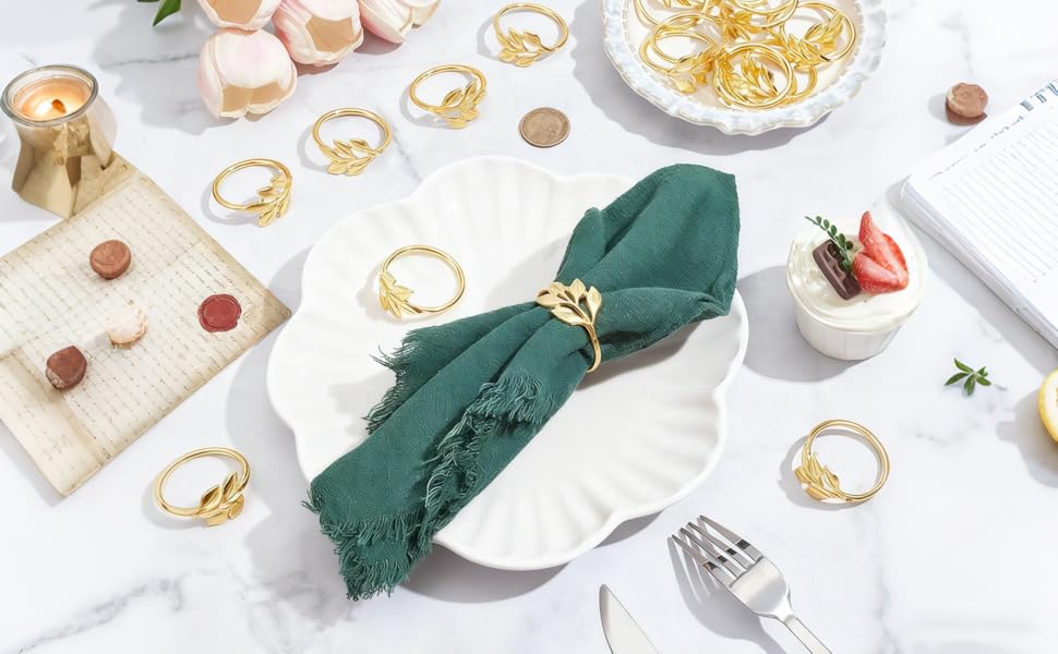Standard Size Napkin Rings: The leaf is approx 0.14~1 inches/0.35~2.55cm. The diameter of the ring is 1.38 inches/3.5cm. Suitable for most napkins. Decorate your monotonous napkin, become elegant and delicate. beautiful design brings elegance to your table.