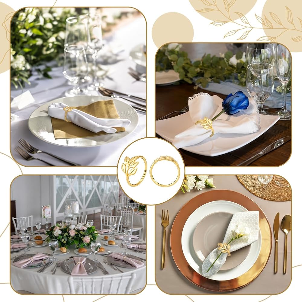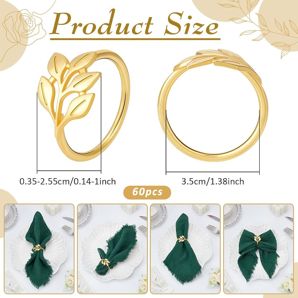Leaf Napkin Ring Set: You will receive 60 pieces metal napkin rings, design with leaf, gold color will add more gloss and elegance, which makes for an exquisite addition to the table setting,It would be a good choice for you add a romantic themed look to showcase your tabletop for family and guests.
