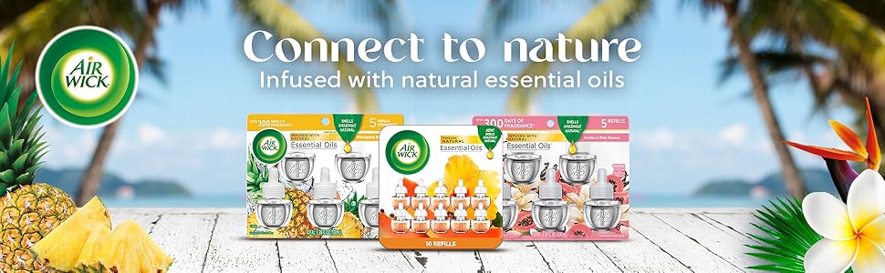 Enhance your home's scent with Air Wick Scented Oil Refills infused with 100% natural essential oils. Air Wick Scented Oil Refills release continuous fragrance for up to 60 days (based on low setting) so your home smells welcoming. Our latest Air Wick scented oil warmer optimizes airflow for 360 degree fragrance diffusion, reaching every corner of the room for a consistent fragrance experience. The Air Wick Scented Oil warmer also allows you to choose between 5 fragrance settings for just the right amount of fragrance. It continuously diffuses and carefully blends fragrance throughout your home, office, or any space.