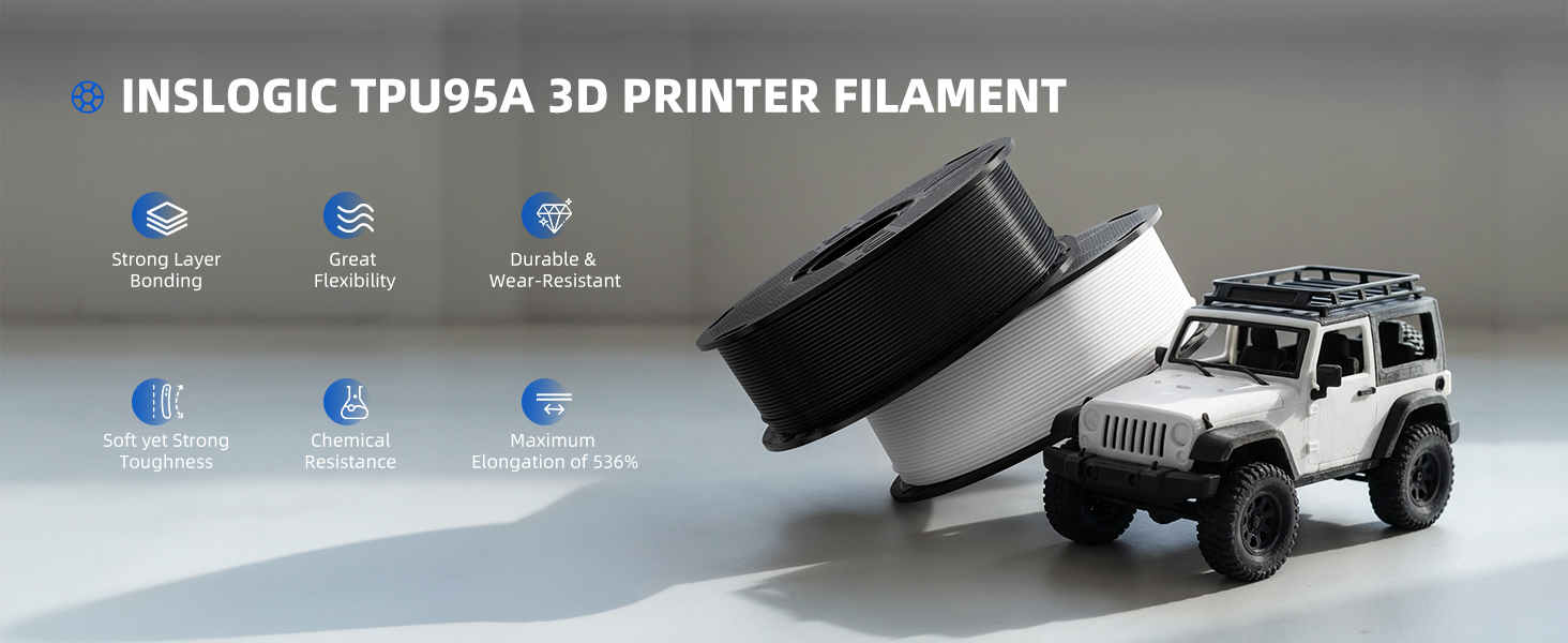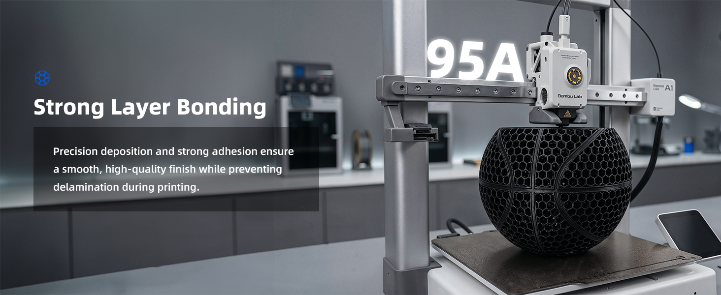 【Ultra-Flexible & Extremely Durable TPU Filament】 Experience unmatched elasticity with our TPU 95A filament, stretching up to 1050% while recovering its original shape. This flexible filament combines rubber-like softness with high strength (36.1MPa), creating durable, functional parts that withstand impact, bending, and repeated use without breaking.