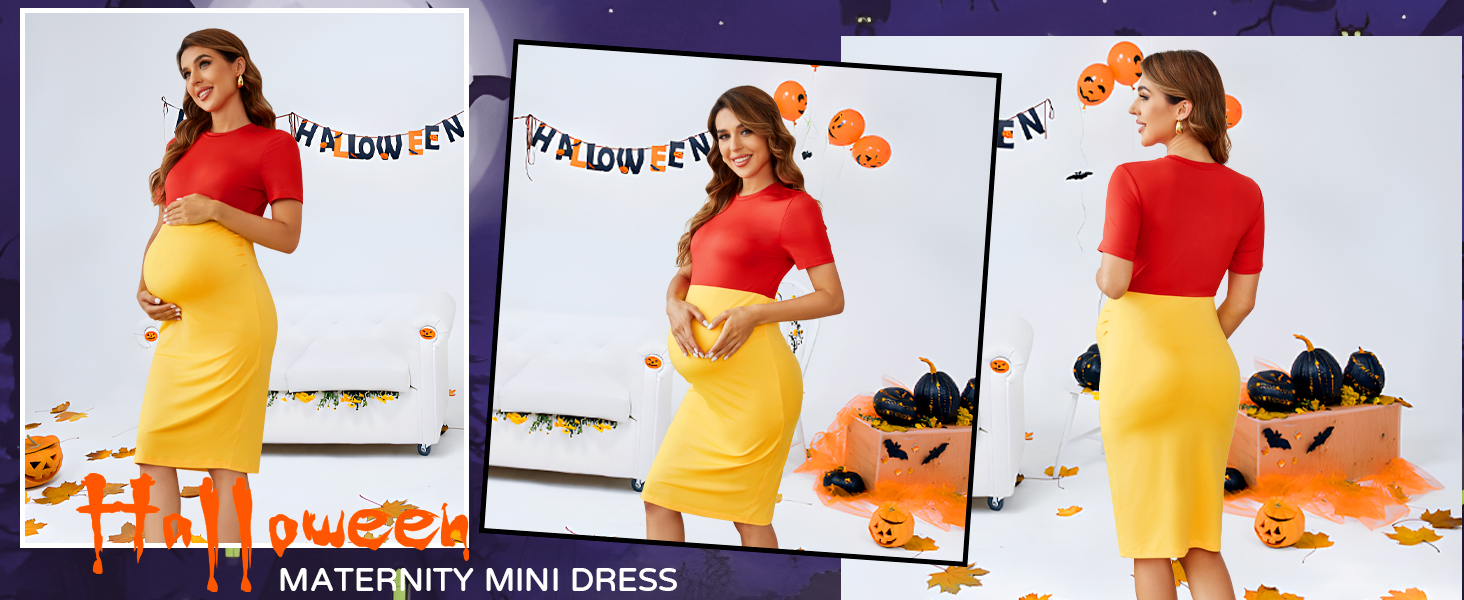 MATERNITY COSTUME - This Halloween maternity mini dress features a color block design, making it perfect for the occasion! We are absolutely smitten with its cute and fancy design - it's incredibly adorable!
