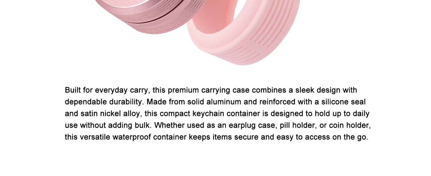 What You Get + Wide Earplug Compatibility: 1 aluminum case + 1 silicone sleeve + 1 spring quick-clip. Compatible with popular earplug styles including Loop, Eargasm, Vibes and more—plus, the sealed design means it doubles as a waterproof pill case when you need a simple pill box.