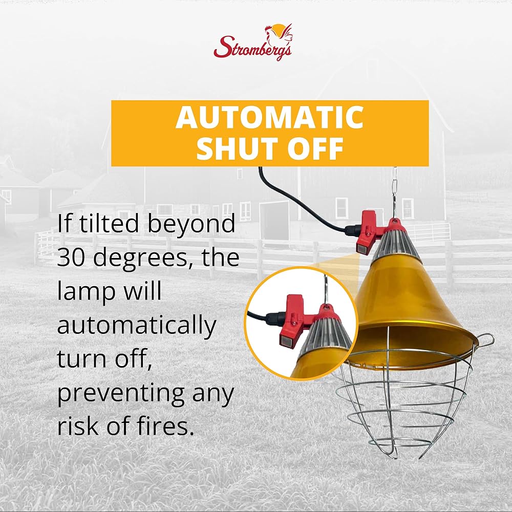 SAFETY SWITCH TO PREVENT FIRES: Our heat lamp provides a safe and reliable heat source for your animals; Unlike traditional heat lamps, ours comes with a safety switch that automatically shuts off the lamp if it tilts more than 30 degrees, preventing fires in case of falls