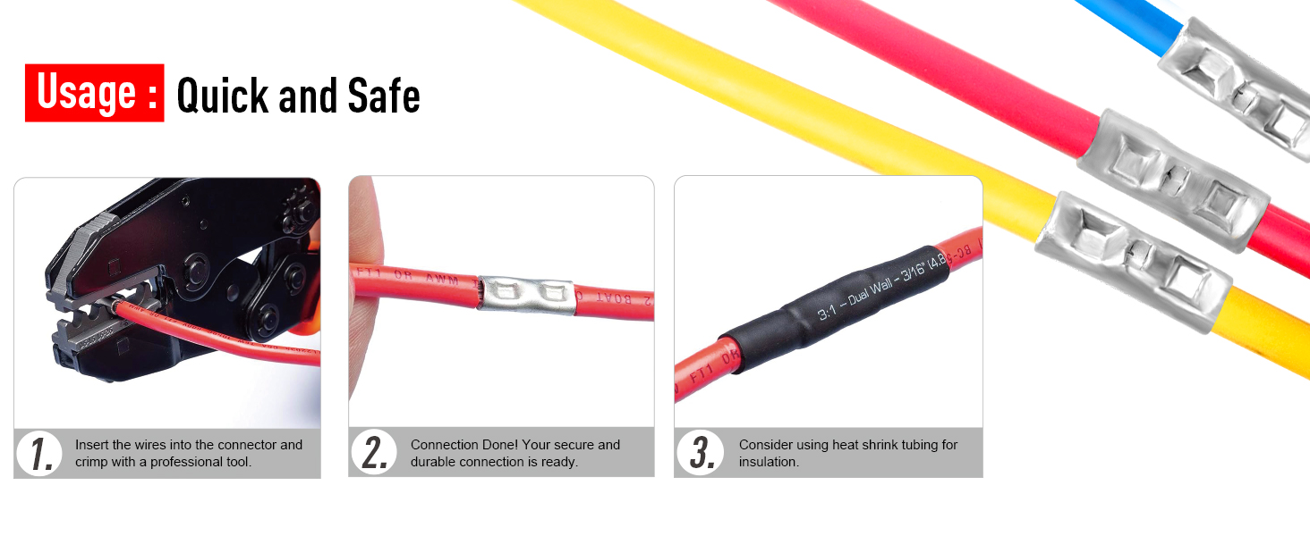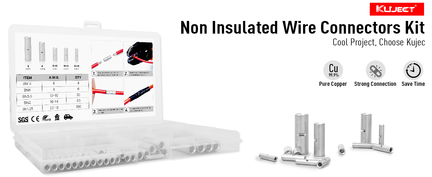 【TIME-SAVING】Simply insert the wire into the non-insulated butt terminal, crimp it, and avoid shortening the wire or reducing conductivity due to coiling