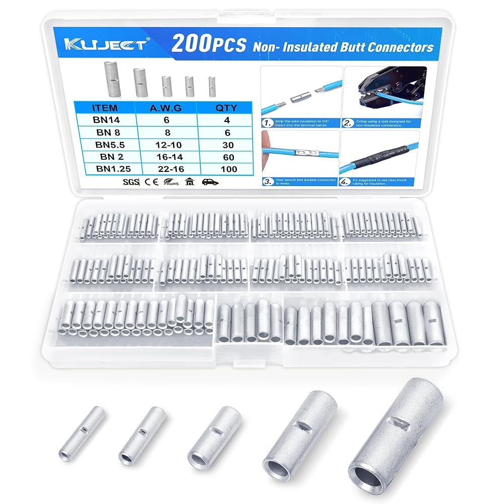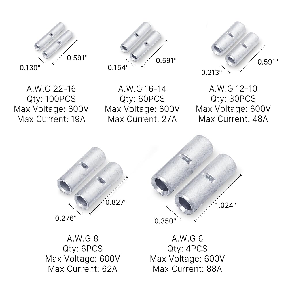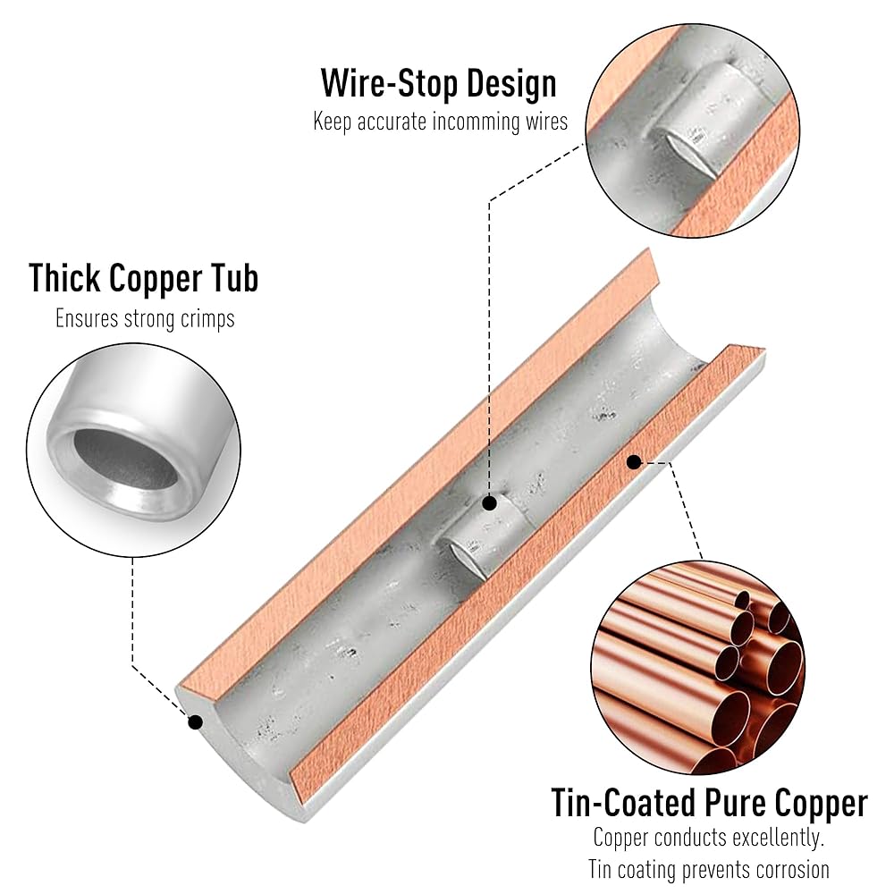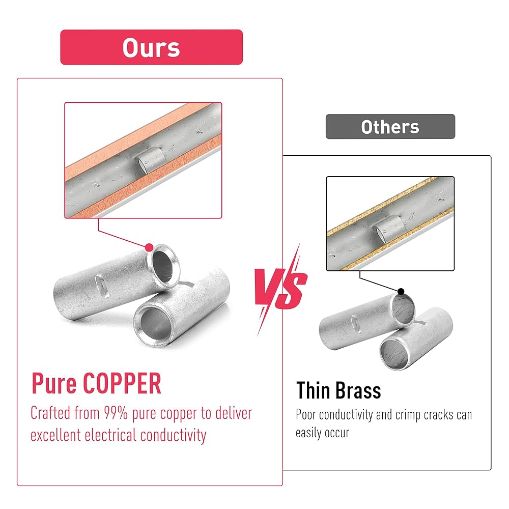 【STRONG CRIMPS】Featuring thickened tube walls, the butt connectors achieve higher crimping success rates and creates a stronger connection for the wire