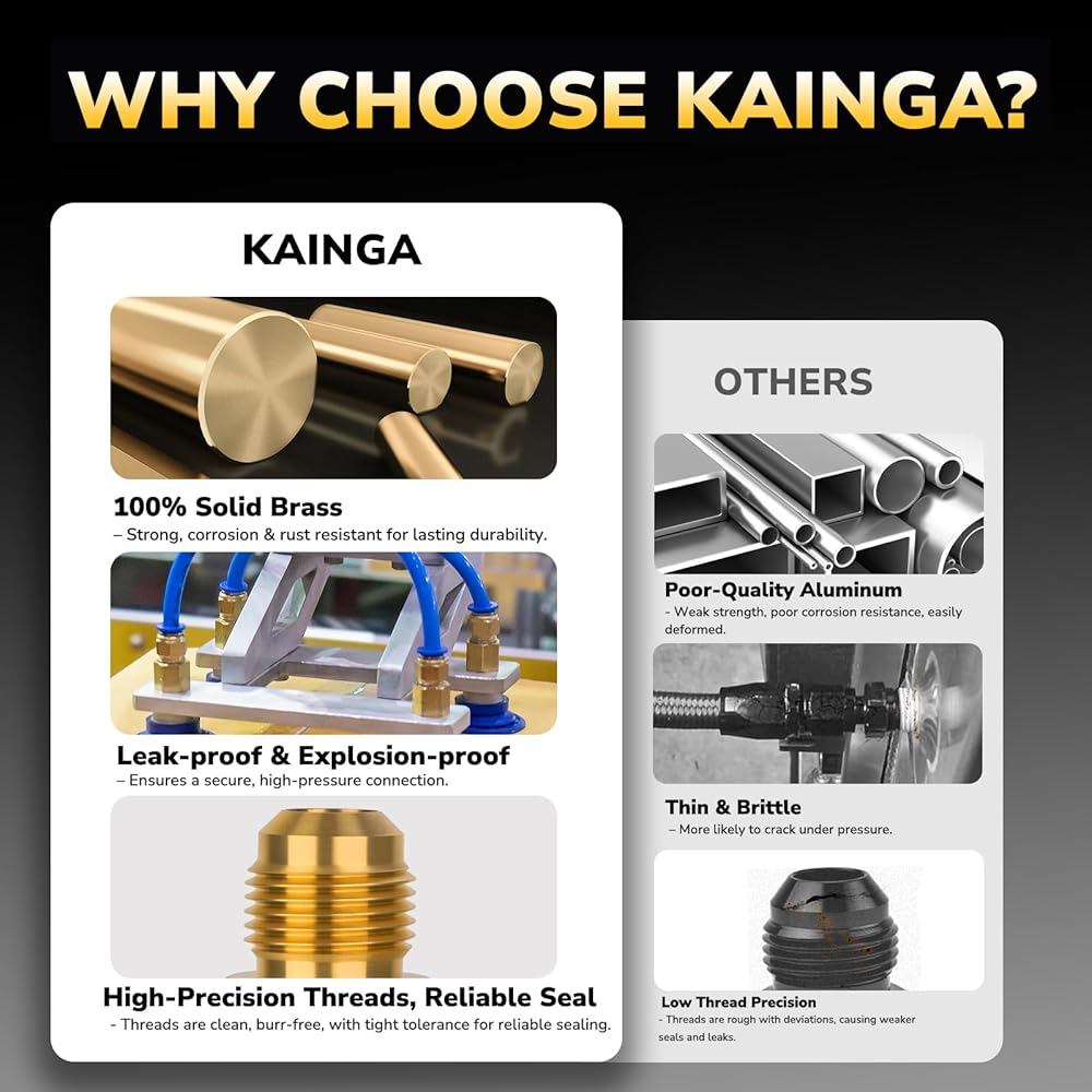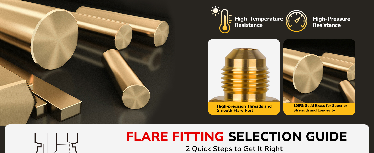 High-Grade Brass: Made from high-purity brass with low magnetic permeability, excellent corrosion resistance, and thermal ductility. These brass flare fitting are precision-machined under strict quality control to ensure reliable, long-lasting performance