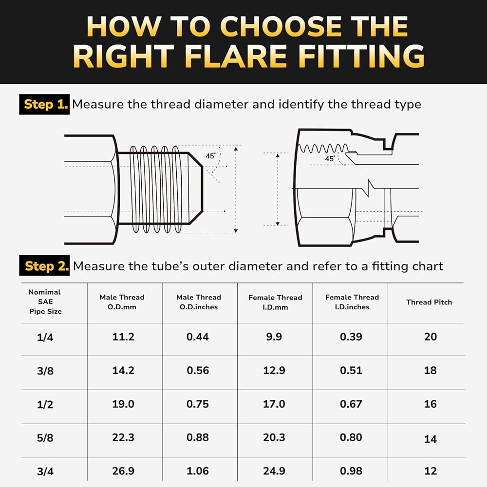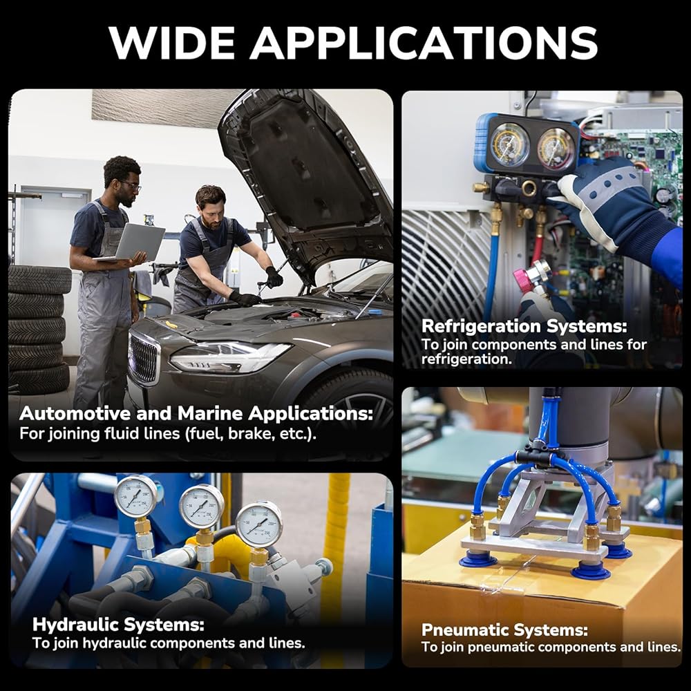 Leak-Proof Connection: Precision flare half union fitting delivers durable, leak-tight seals for fuel, oil, gas, air, and fluid lines. Compatible with copper, brass, aluminum, and steel tubing, built to withstand high pressure and harsh conditions