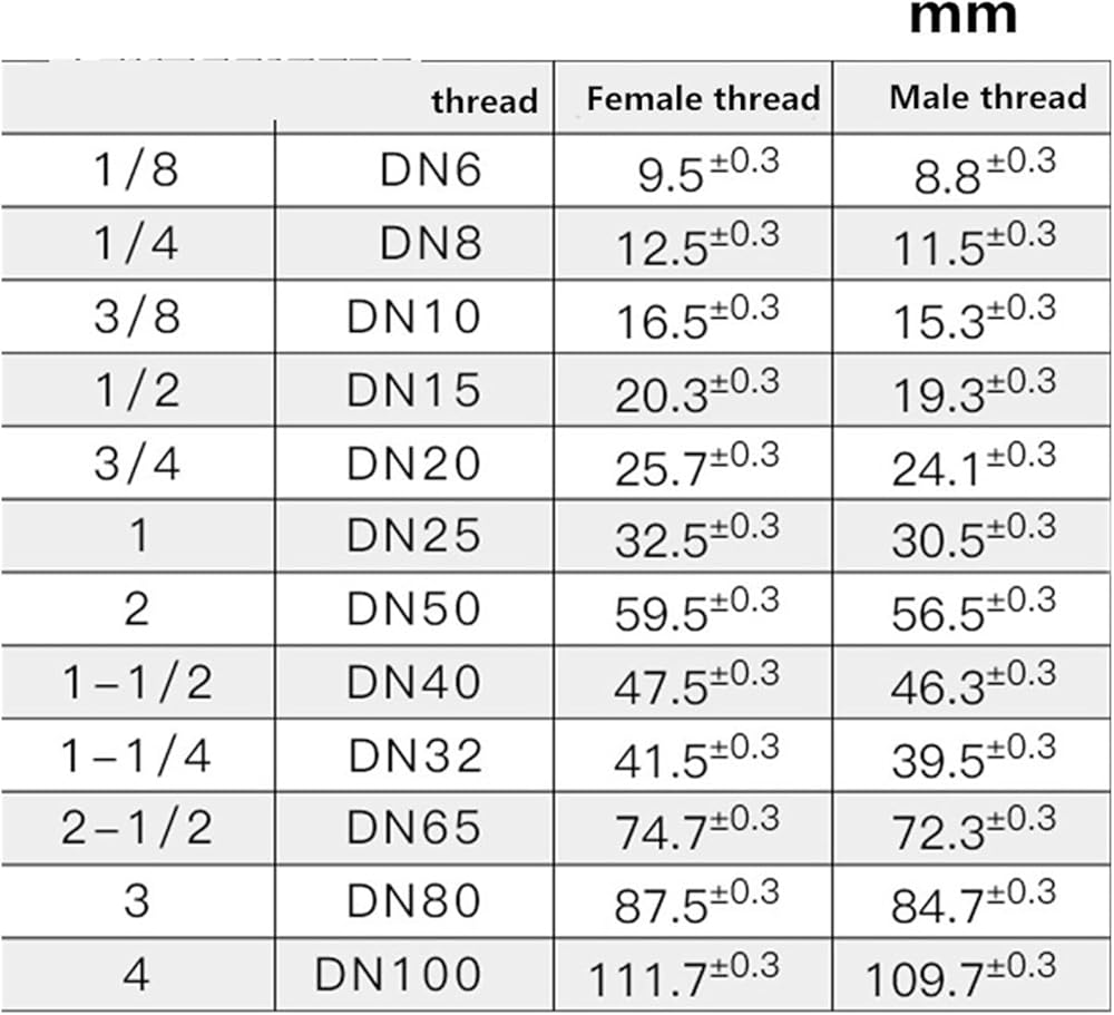 Male Thread Size(about): 1/8"(9.5mm), 1/4"(12mm), 3/8"(16mm), 1/2"(20mm),3/4"(26mm),1"(32mm) FemaleMaterial: Brass