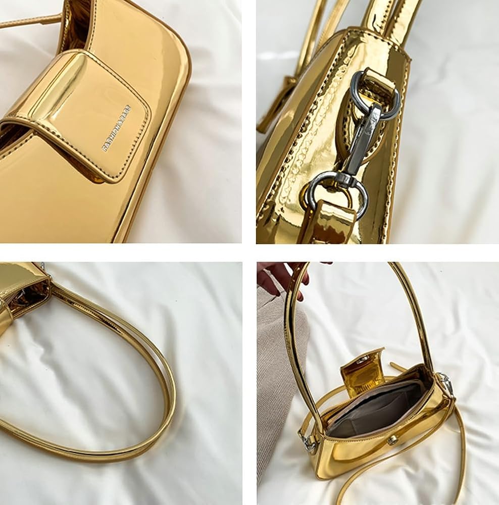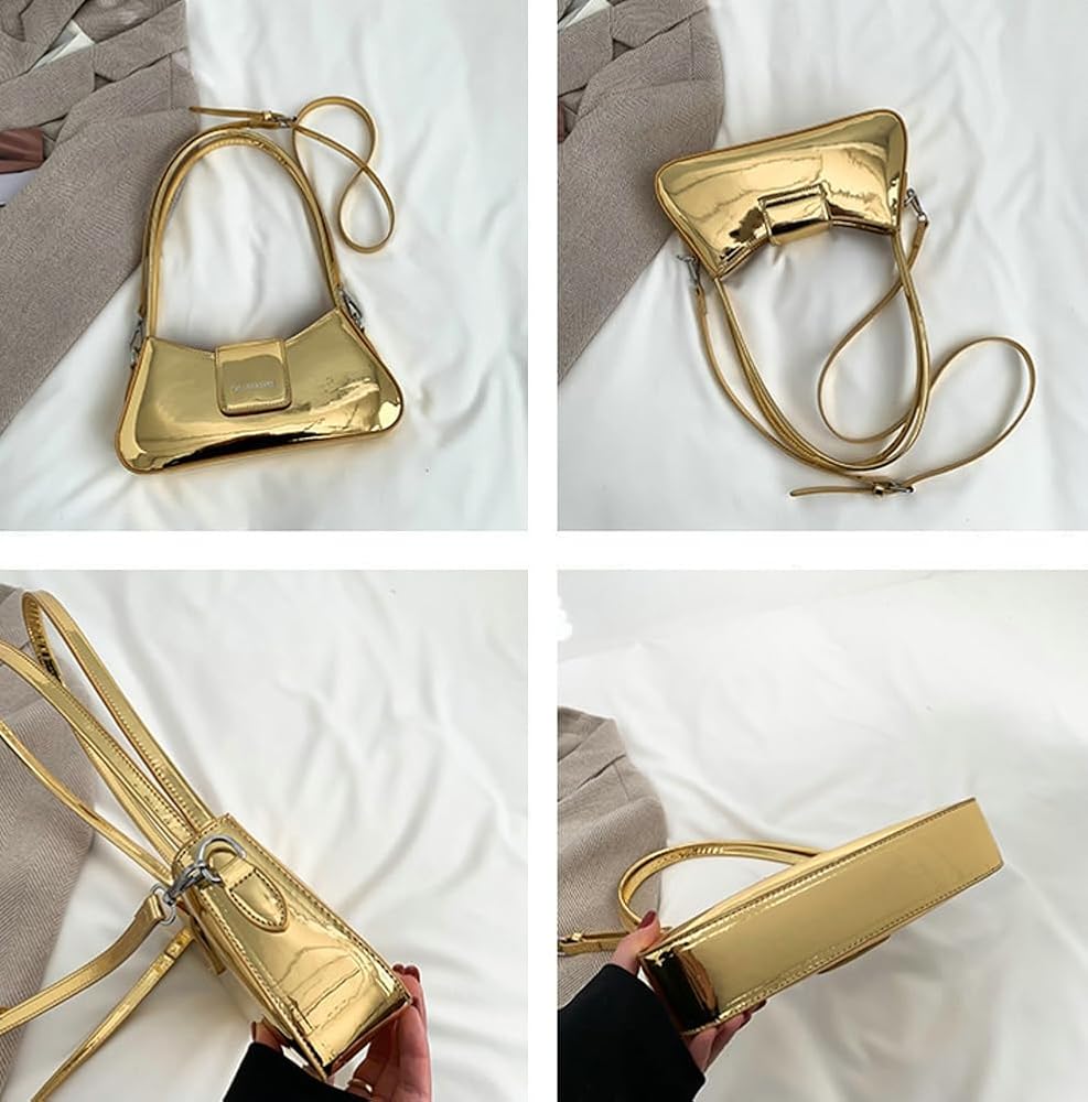 Y2K Evening Hobo Bag Size: Bottom Length: 28cm/11in, Top Length: 21cm/8.3in, Height: 13cm/5.1in, Width: 6cm/2.4in. Perfect size, the cute evening shiny party bag is large enough to put your cell phone, keys, cards, cosmetics and so on.