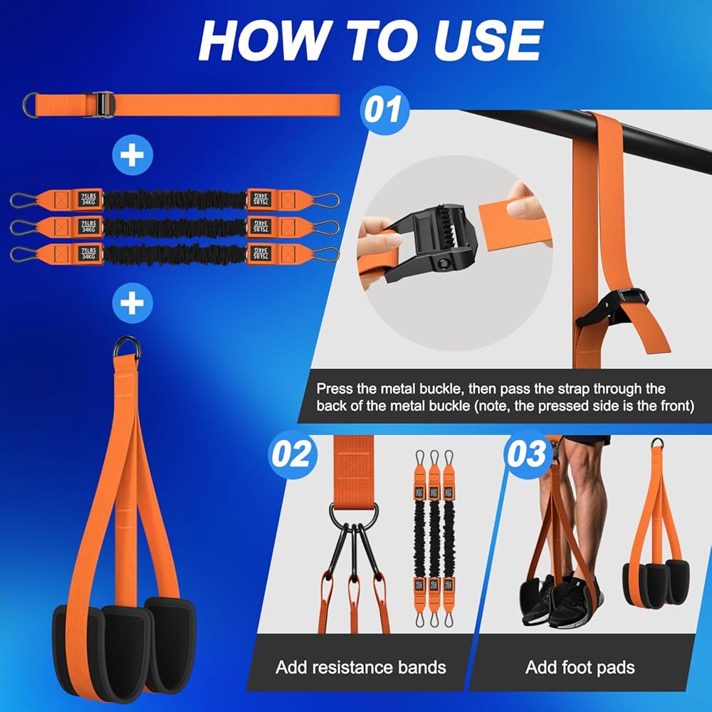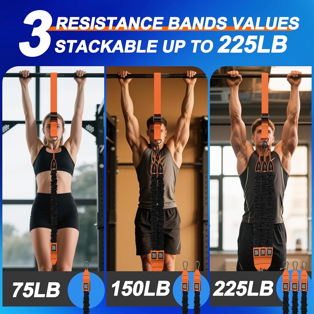 Pull Up Assistance Bands Set: WHATAFIT pull up band set is equipped with 3*75 lbs elastic resistance bands, and 1 Double Footrest,1 adjustable strap,1 instruction book,1 travel carry bag.You can combine different resistance level, according to your different exercise needs.