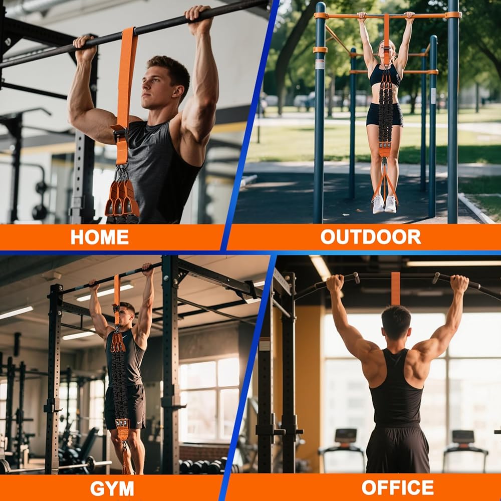 Your Movable Gym:These pull-up resistance bands work perfectly with fitness equipment such as pull-up bars, door bars, assistive devices and wall brackets, making them a must-have for enhanced workouts. Pull-up assist band target arms, shoulders, back, chest, and core muscles, build upper body strength quite quickly. Improving athletic performance also helps you to increase coordination, improve endurance, flexibility and range of motion and work different muscle groups.