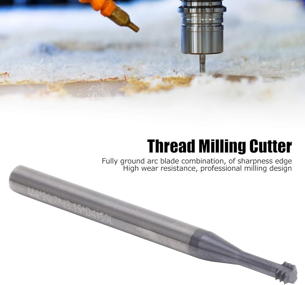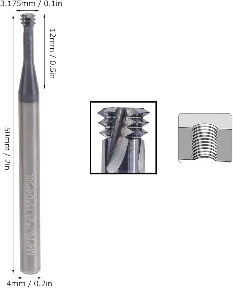 3 Tooth Metric 60° Tungsten Steel Thread Milling Cutter for CNC Machines, M4x0.7xD4x50 Hand Tool, and Durable for Cutting Multiple Materials