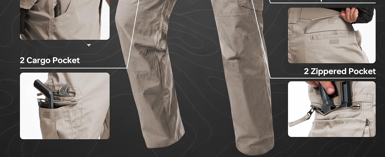 【9 Practical Pockets】These mens work pants feature 9 versatile pockets to securely store your tools, phone, wallet, and everyday essentials. These mens tactical pants allow you to carry all your necessary gear without using your hands, providing convenience for work, outdoor adventures, and everyday wear.