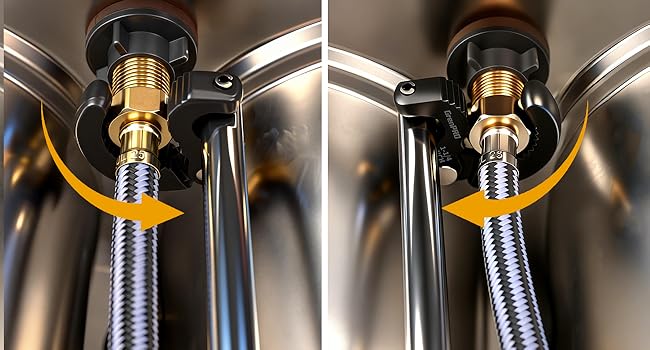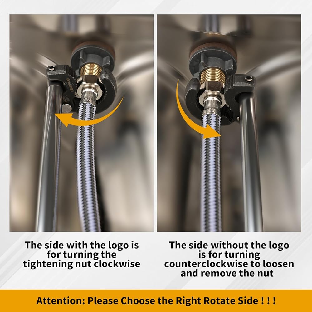 180°SWIVEL HEAD:The 180° pivoting head holds its position at any angle, making it especially suitable for installing nuts in tight, hard-to-reach areas. Its spring-loaded jaws securely grip faucet and sink nuts and can be easily tightened or removed
