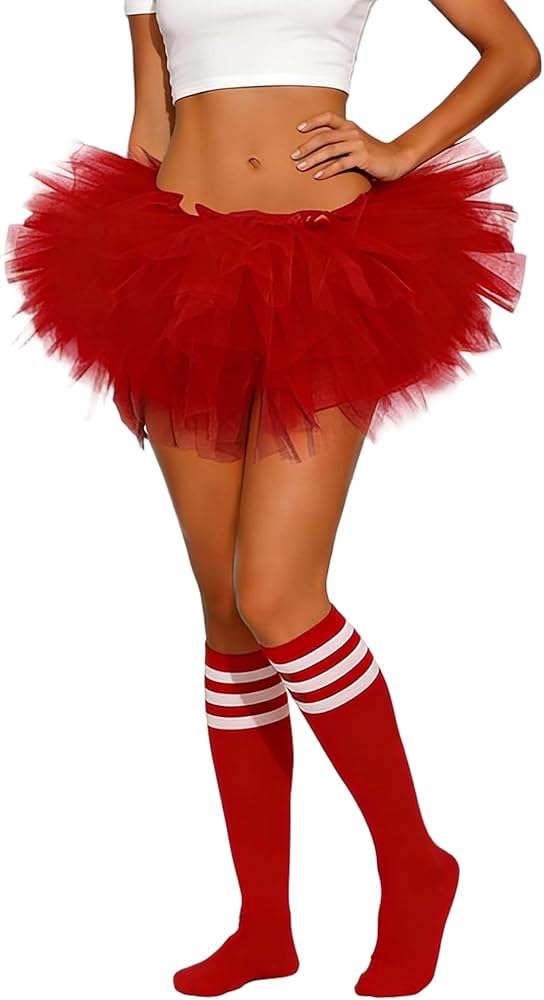5 Layered Tutu Skirts: Includes 1 tutu skirt and 1 pair of knee high socks, Bright colors make you stand out and are fun to share with friends. Perfect for dress up parties, Halloween, Christmas, marathons, school events, spirit week, princess outfits, dance, and more festive occasions