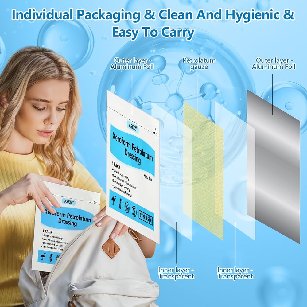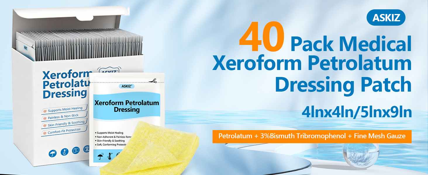 【 Individually Packaged &Value Set】4"x4"Xeroform petrolatum gauze dressing, Each box contains 40 Pack, each individually packaged in sterile individual packaging for ease of use and storage, ensuring safe use on the skin and providing a good wound care experience.