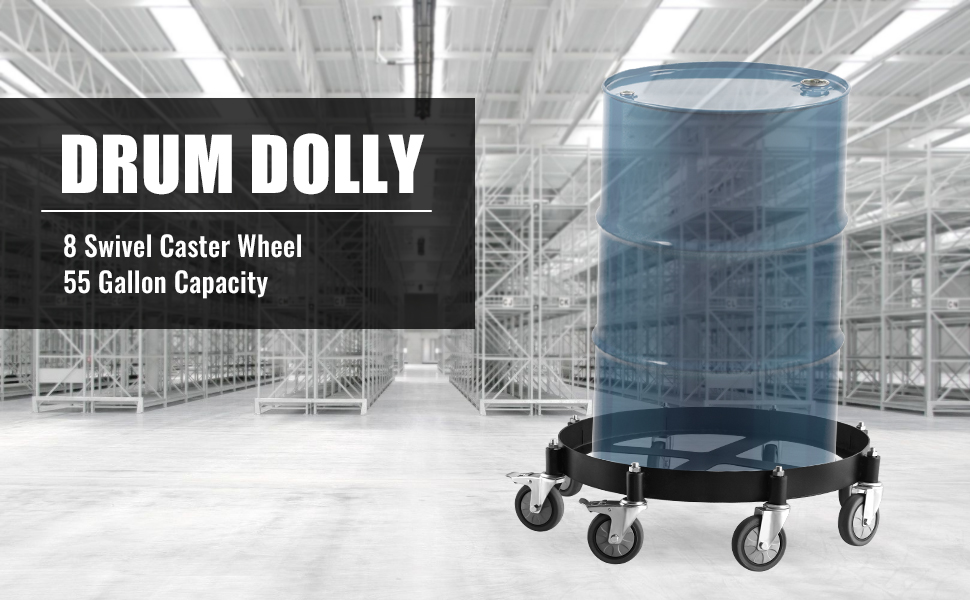 【360° Rotation Wheel】:Eight 360° swivel casters on the bottom of the frame make this heavy duty dollies easy to move around the warehouse or other job sites when loaded with 55-gallon drums or large trash cans. The wheels roll smoothly and don't get stuck, so you don't have to worry about the risk of tipping!