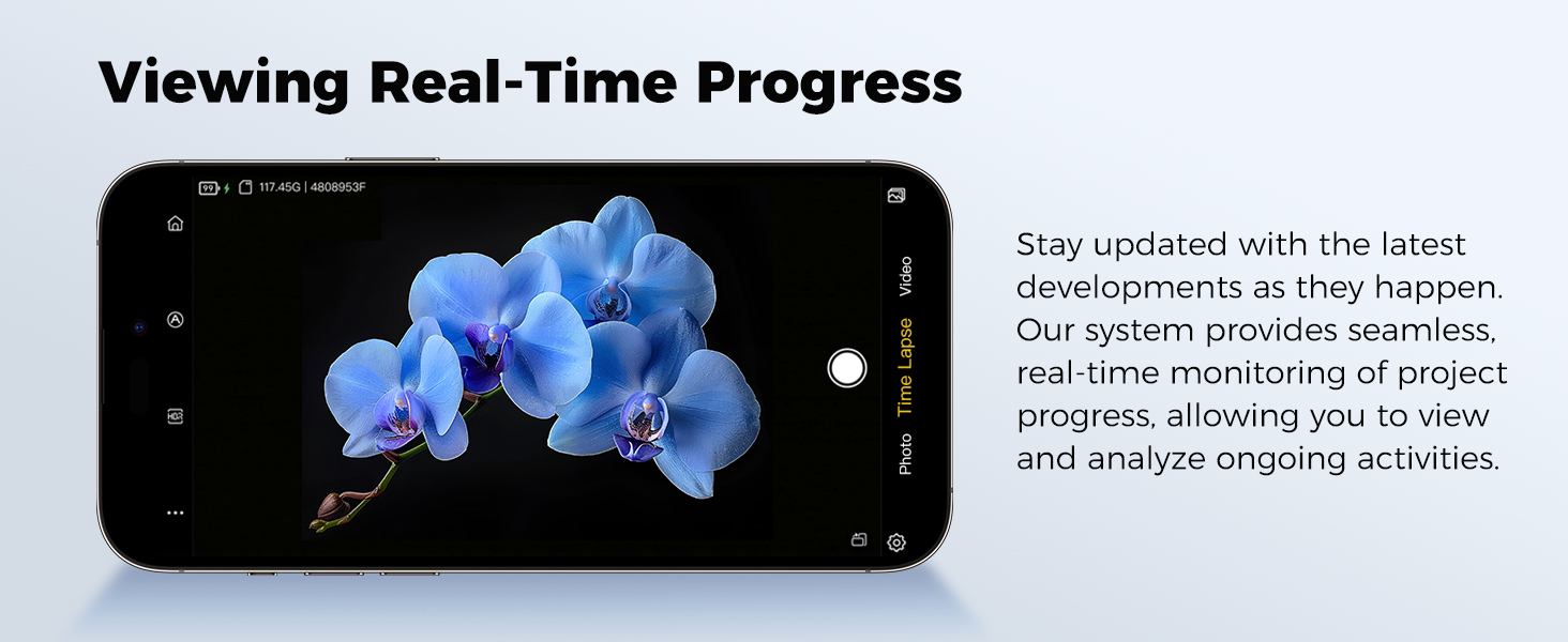 【Remote Access 】Download our PC client software & register your atli time lapse camera to gain remote access no matter where you are in the world.Use ATLI time lapse camera to vividly captures the dynamic process, like: sunrise and sunset, clouds rolling, flowers blooming, plants growing.