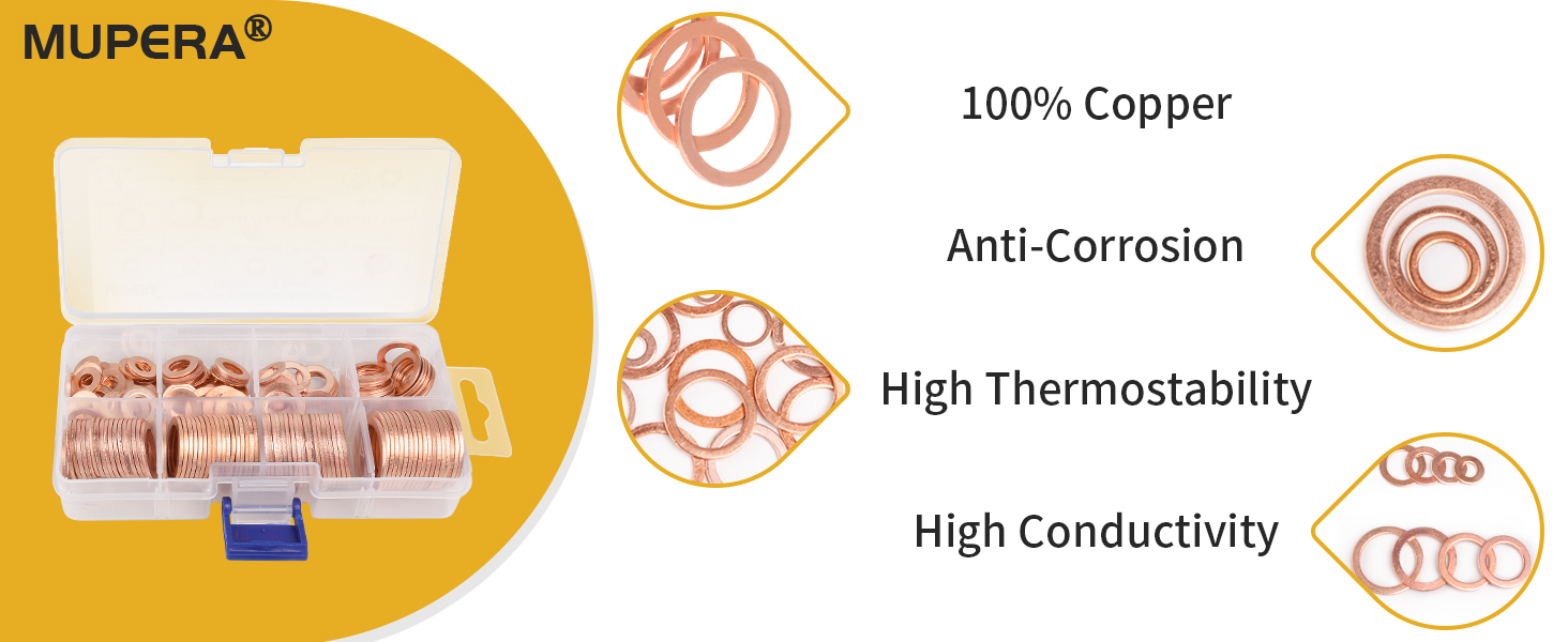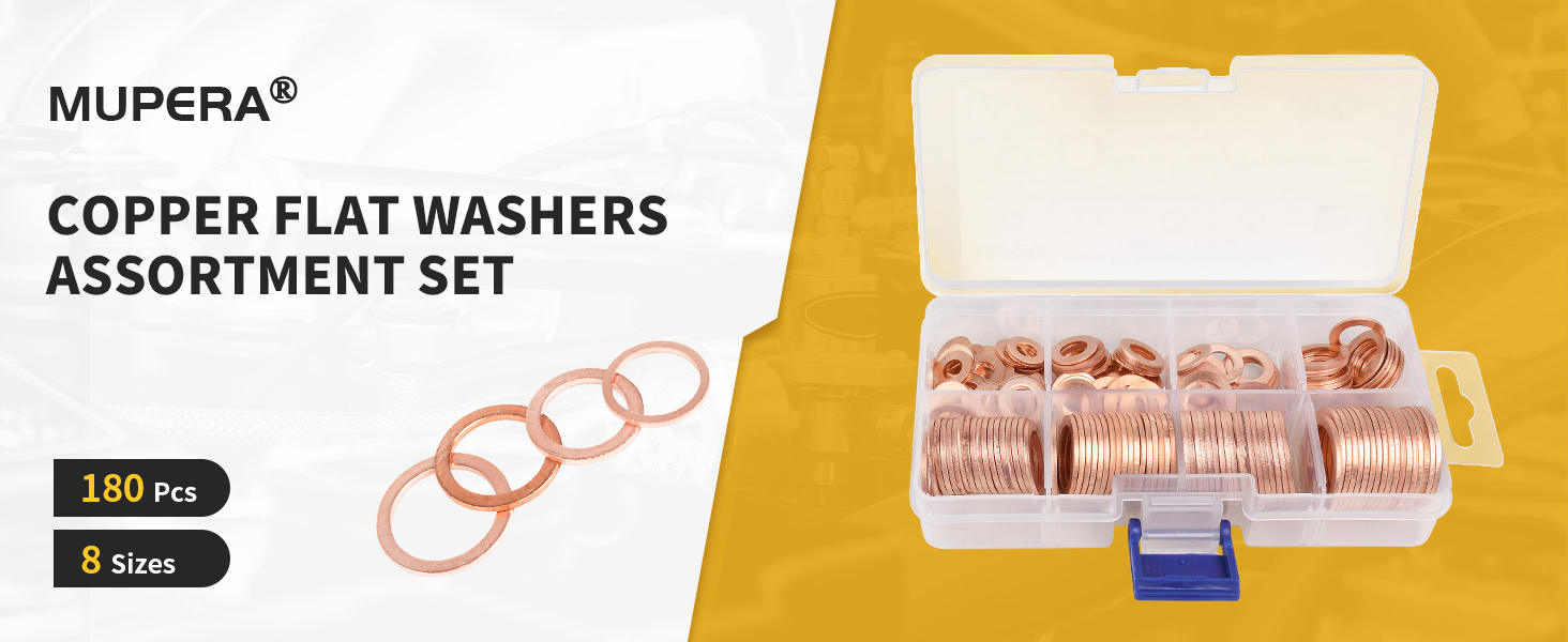 Upgrade your washer assortment with the Mupera 180PCS Copper Washer Assortment Kit! This kit includes 8 sizes (M6-M20) of heavy-duty copper crush flat washers, suitable for both home and industrial use. Keep your projects secure and leak-free with these high-quality washers.