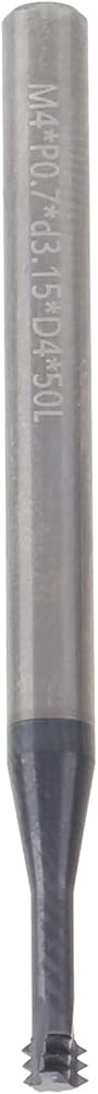 Thread Milling Cutter, 3 Tooth Metric 60°, Tungsten Steel CNC Hand Tool, M4x0.7xD4x50 Specification, for Cutting Aluminum, Copper, Cast Iron, and More, High Wear, Long