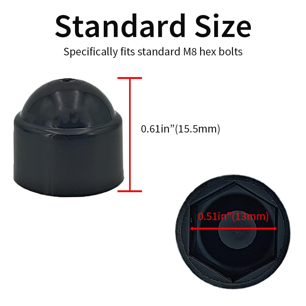 Standard Size: Specifically fits standard M8 hex bolts, with a 13mm hex width and 15.5mm height, ensuring a snug and secure cover.