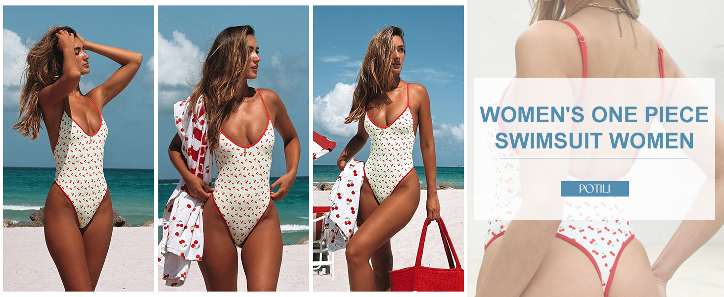 Feature:Adorable cherry print paired with vibrant red contrast trim creates a playful, retro-inspired look. The deep V-neckline and high-cut leg design elongates your figure, while the thin adjustable spaghetti straps and low back add a touch of feminine charm.